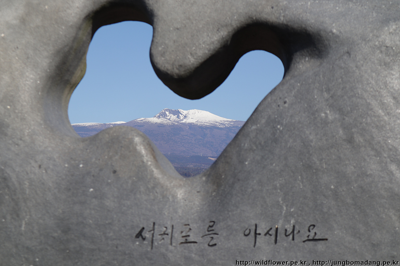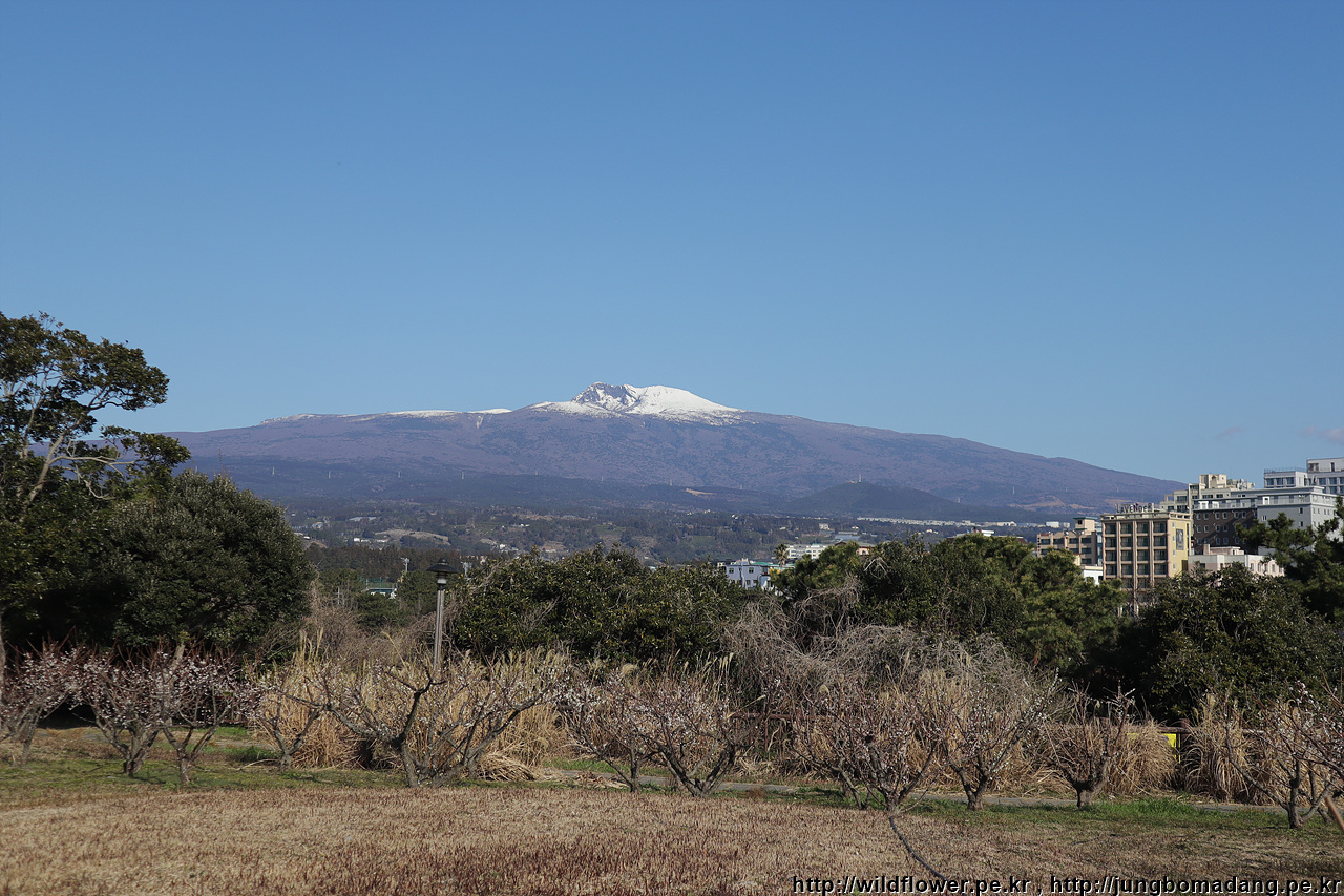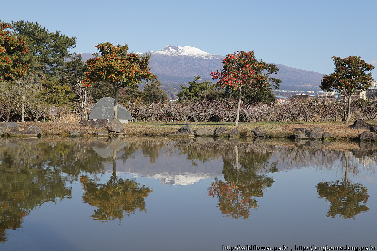 아하! 이런 구도를 원했던 거군요? 한라산도 보이고 그 아래 매화나무들이 보이고, 연못의 반영까지