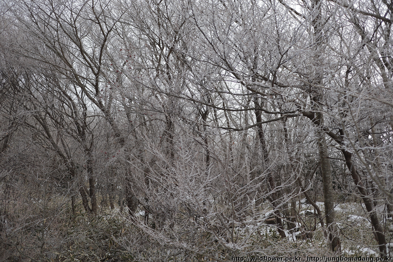 그렇게 240번 버스를 타고 1100도로 정류장을 지나는 데 이렇게 밖에는 상고대가...