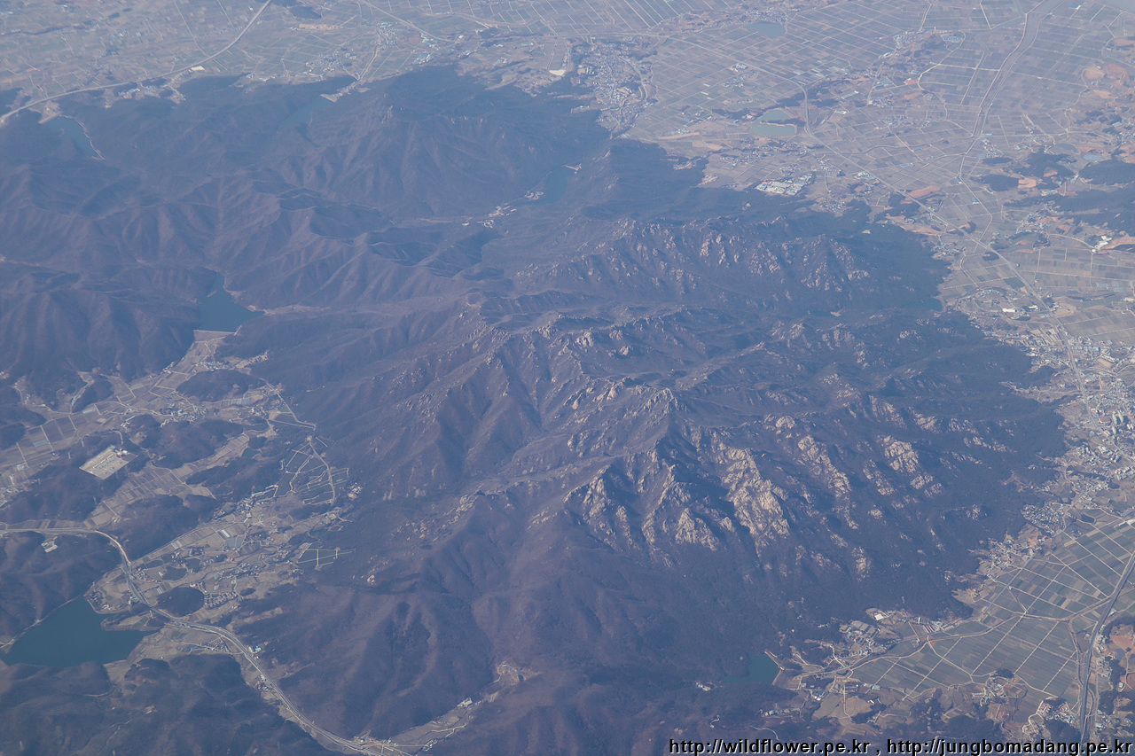좌측 아래 봉우리 2개로 이뤄진 단산, 그리고 우측에는 모슬봉도 보입니다.