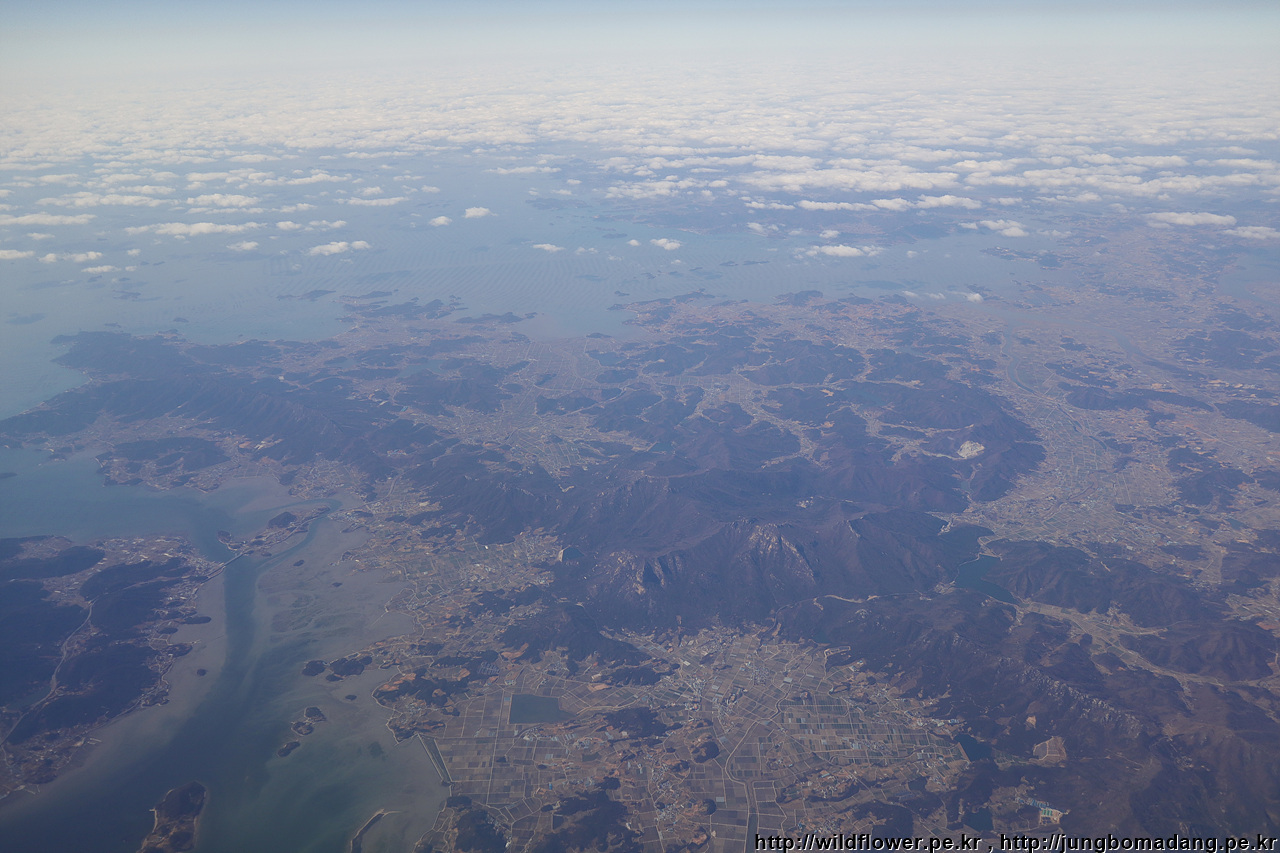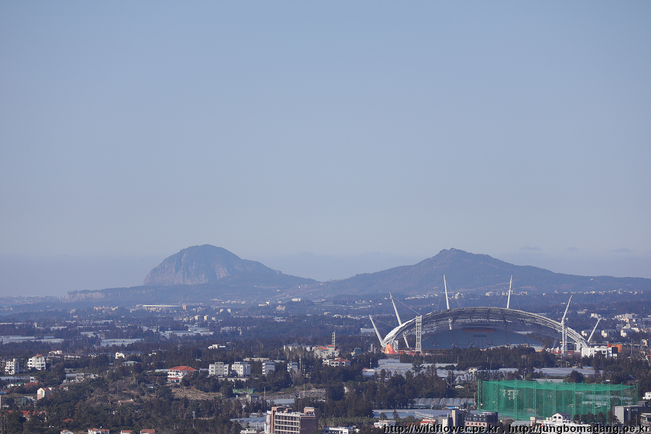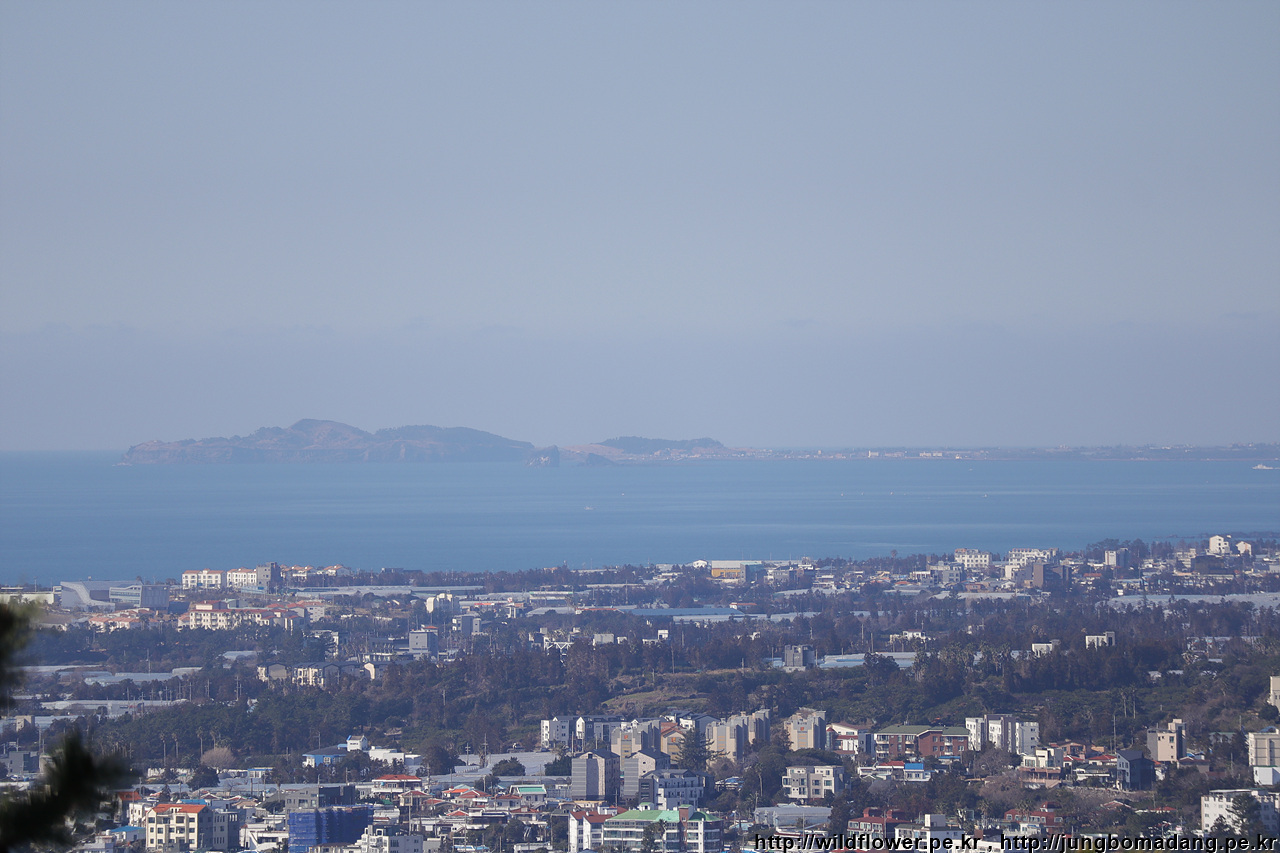 좌측으로 넓적한 것은 가파도, 그 우측에 송악산, 가파도와 송악산 아래 두개의 작은 섬은 형제섬, 우측에 큰 봉우리는 산방산입니다.