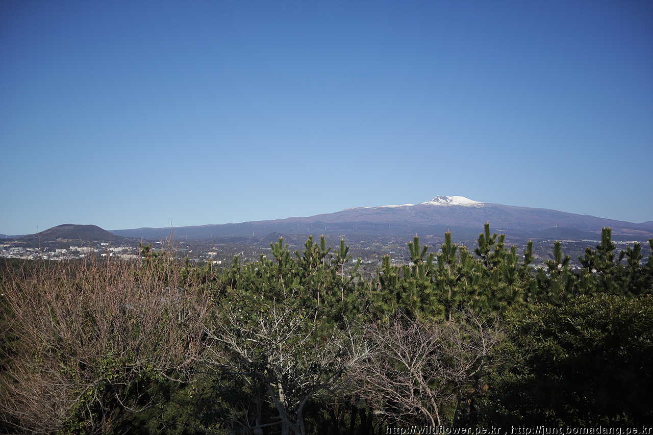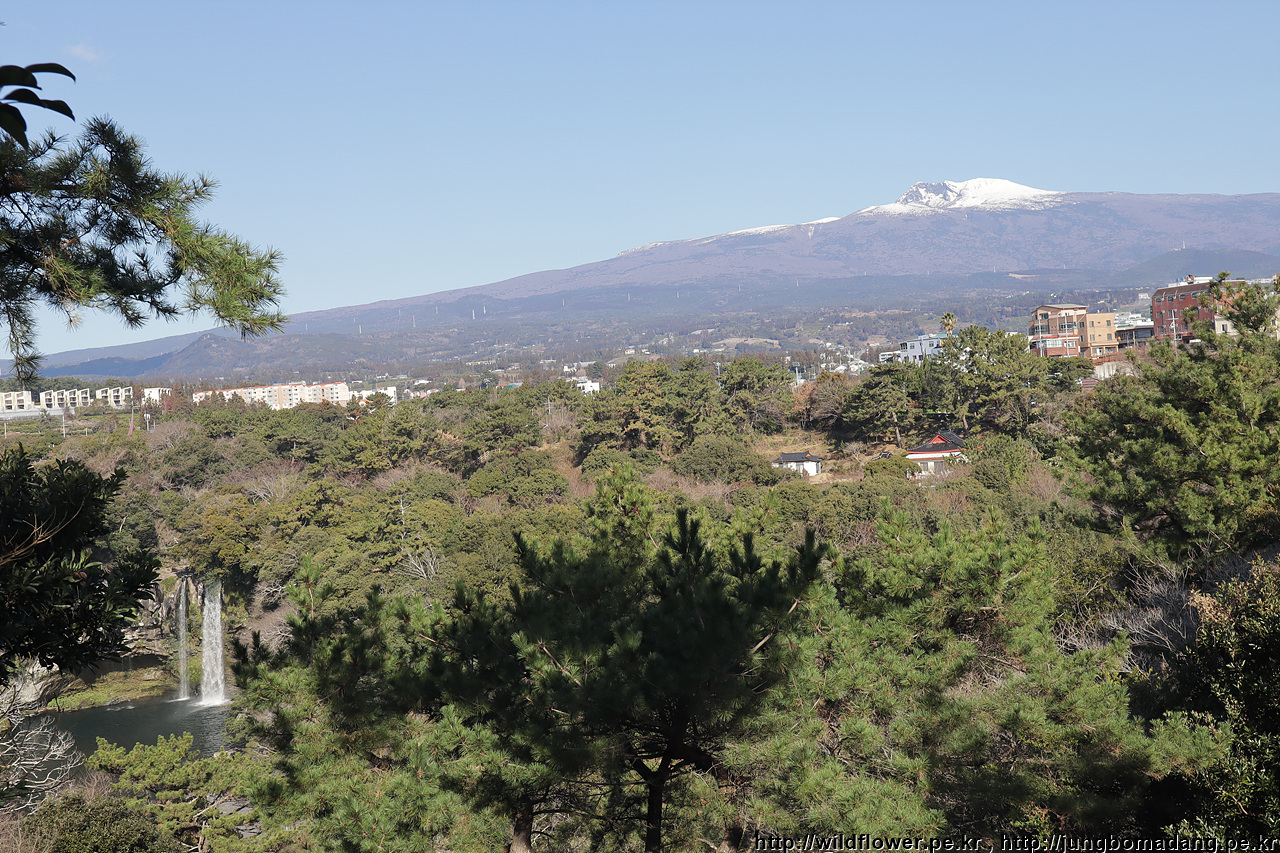 아하! 이런 구도를 원했던 거군요? 한라산도 보이고 그 아래 매화나무들이 보이고, 연못의 반영까지