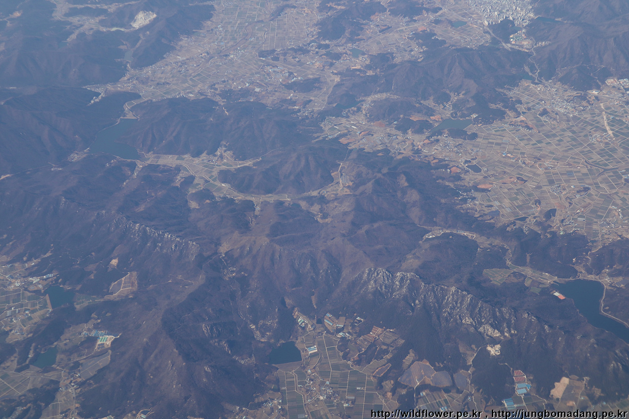 좌측 아래 봉우리 2개로 이뤄진 단산, 그리고 우측에는 모슬봉도 보입니다.