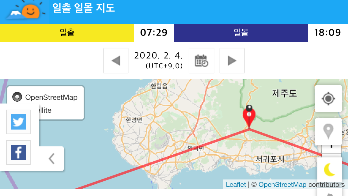 현위치 기준으로 직선의 왼편은 일몰, 오른편은 일출 방향을 의미합니다.