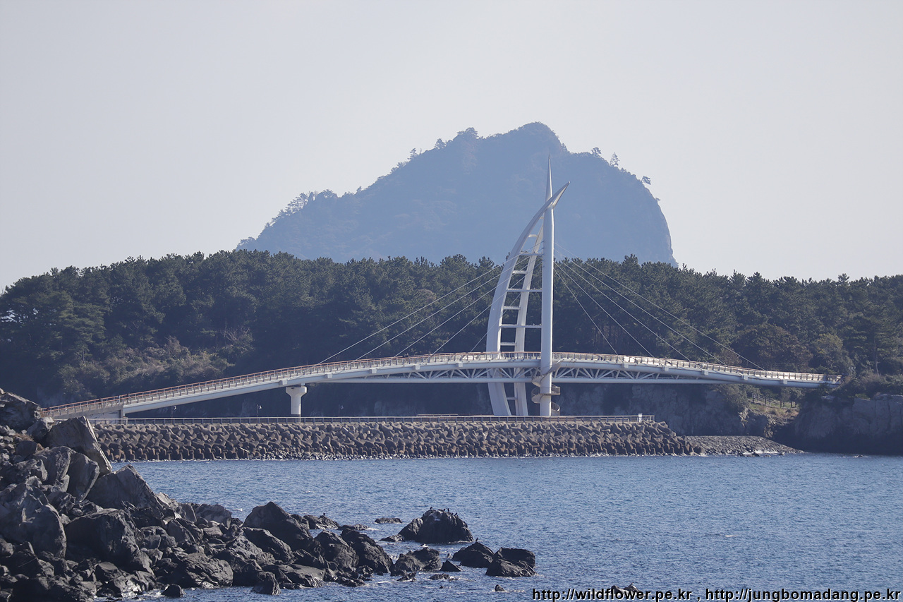 새연교와 그 뒤로 보이는 거대한 생명체는 숲섬(섶섬)입니다.