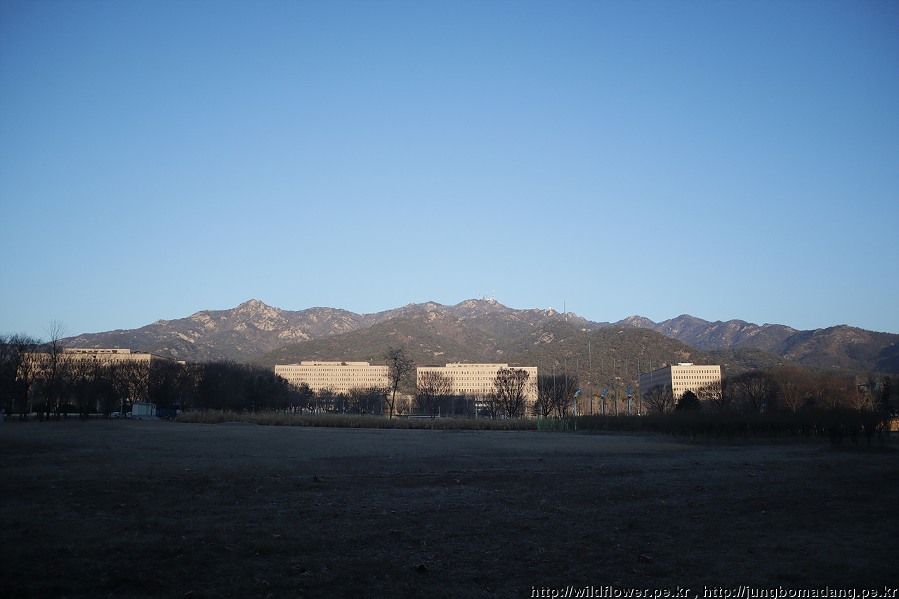 정부과천청사 뒤로 관악산이 보이고