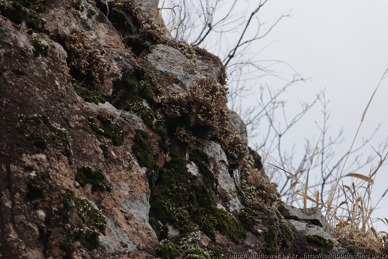 바위에 이끼에 눈송이가 살짝 얹힌 게 이뻐서