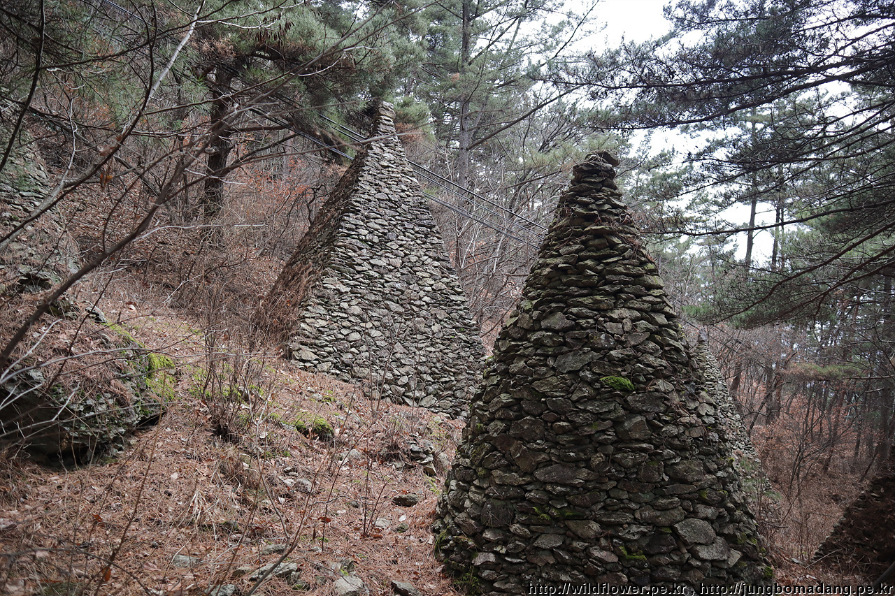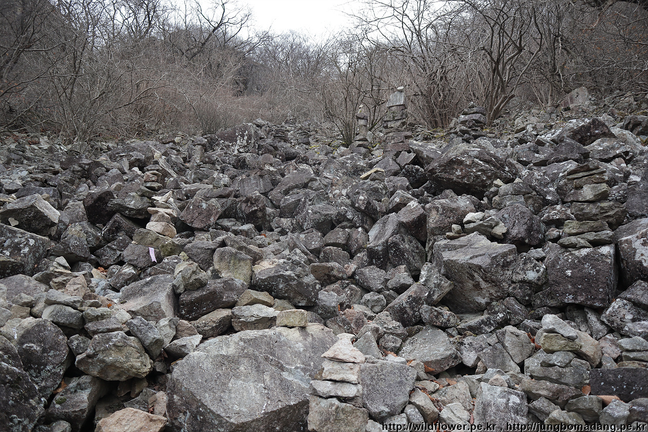 칼다봉 - 유래는 모르겠으나 칼같이 생긴 바위들이 많아서(다) 그리 지어졌나 봅니다. 실제 하산하다 보면 판같이 생긴 바위들이 겹쳐진 모습으로 아주 많이 볼 수 있어요.