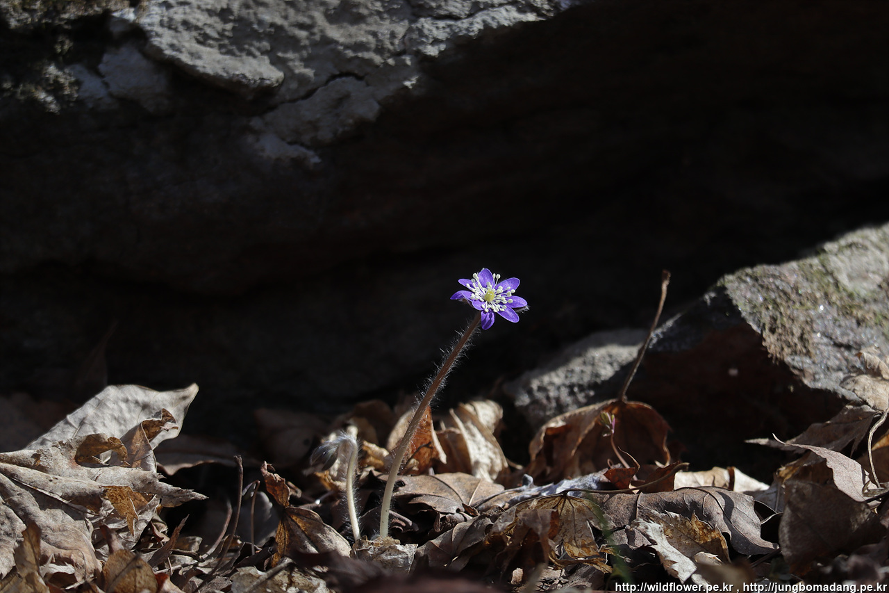 노루귀 - 청색 노루귀도 바위 아래서 완전 개화했습니다. ㅠㅠ 이쁘네요
