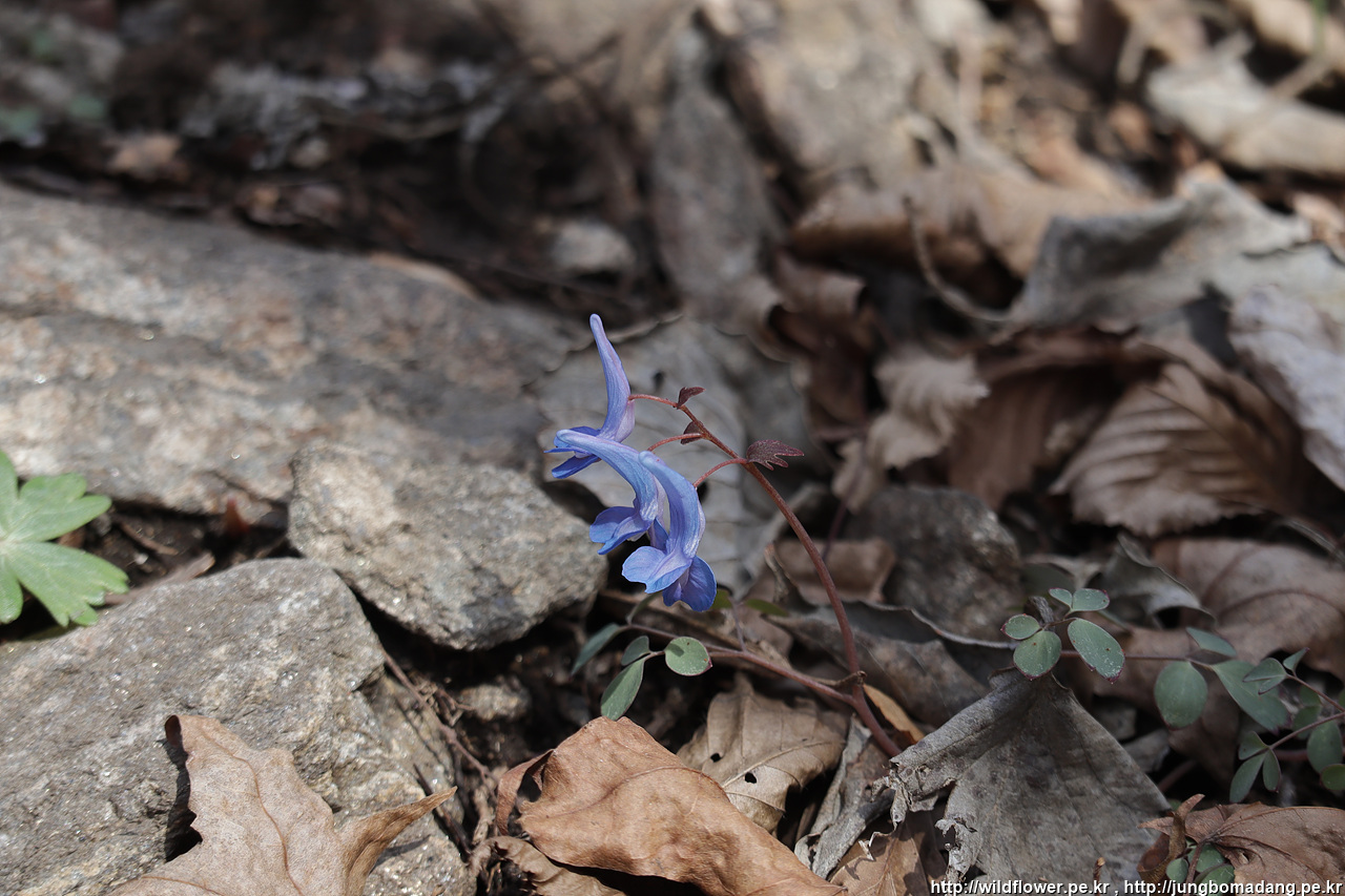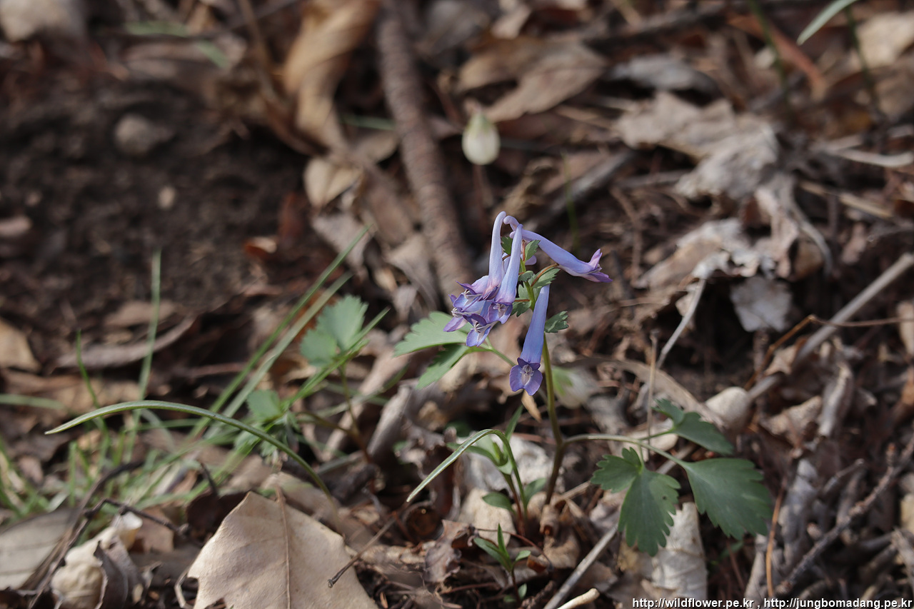왜현호색 - 현호색도 종류가 몇가지 앴습니다. 잎이 동글 동글한 게 특징인 왜현호색, 현호색은 약재로 사용한다고 합니다. 아참 보니 위에서 본 산괘불주머니와 꽃이 비슷한가요?