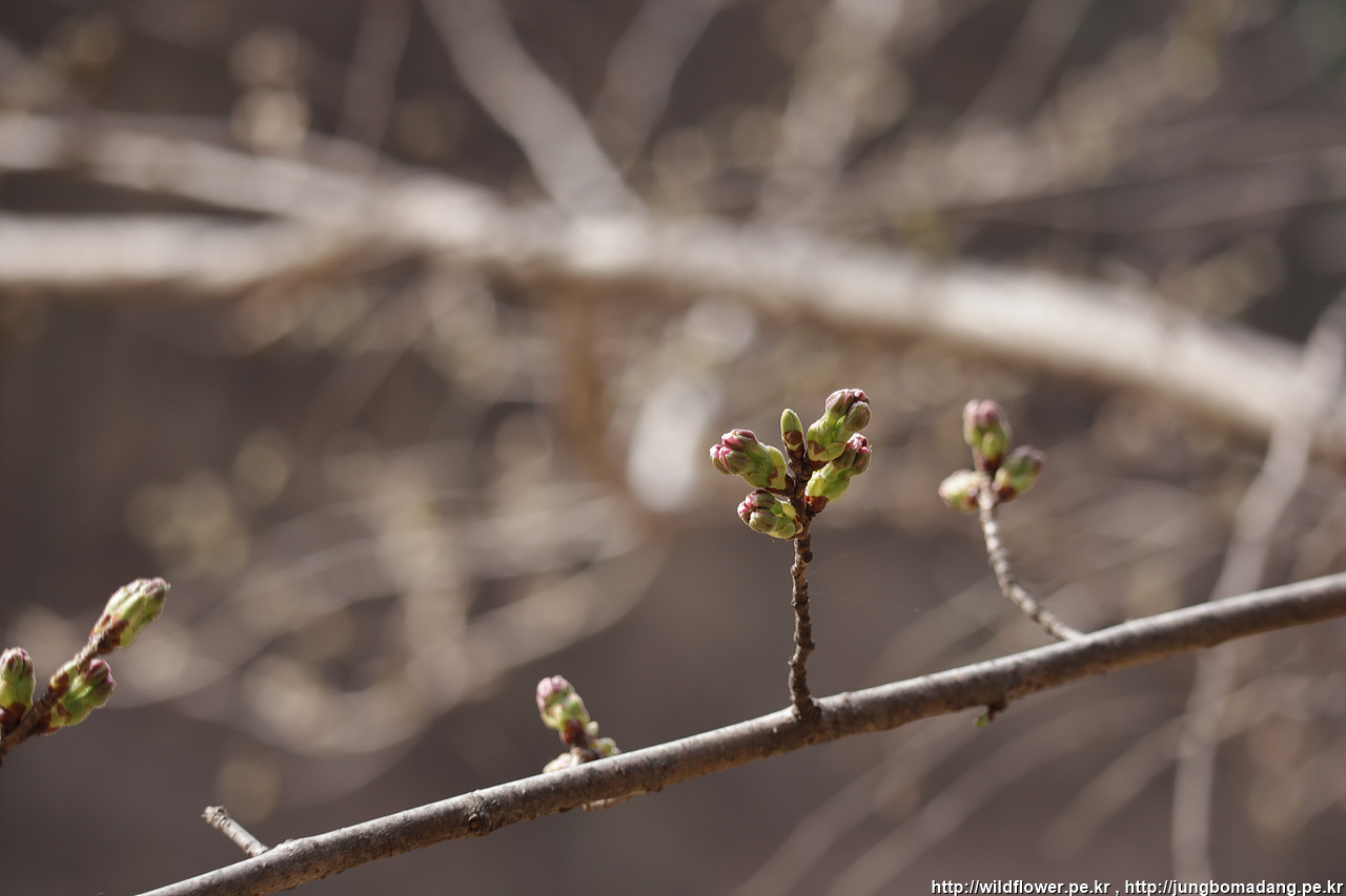 벚나무는 꽃을 피워 내기 위해 힘을 쥐어 짜는 중입니다.