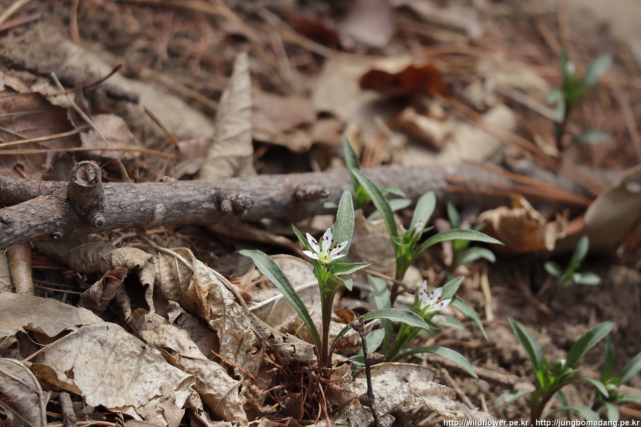 개별꽃 - 잎만 무성한 줄 알았더니 보다 양지바른 곳에는 하얀 꽃을 피웠습니다.