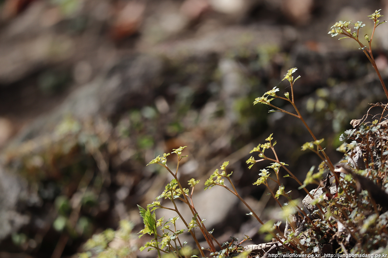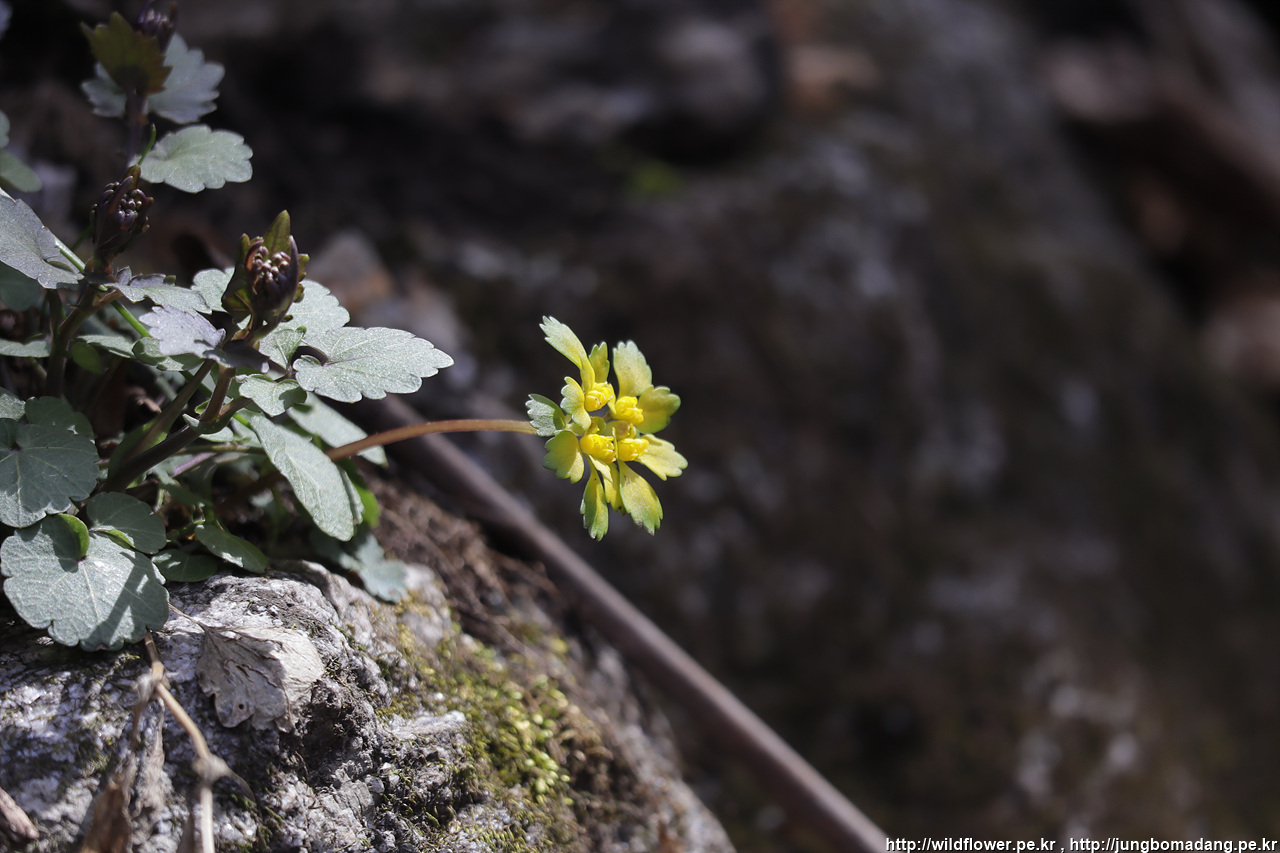 괭이눈 - 안에 꽃이 자세히 보면 고양이의 눈을 닮았다고 해서 고양이 눈, 괭이눈입니다. 자매품 고양이가 배탈날때 섭취한다는 괭이밥도 있습니다.