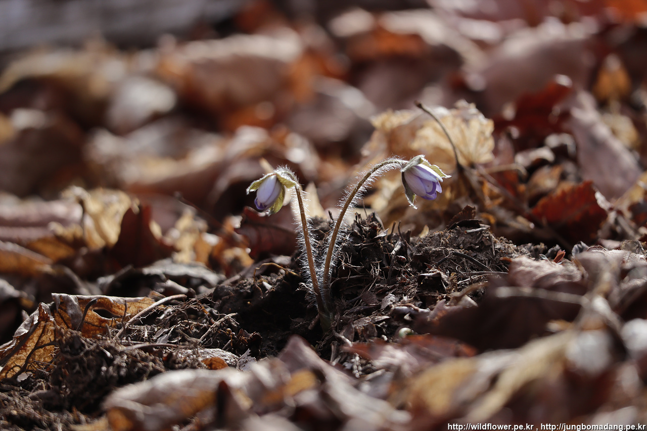 노루귀 - 역시 노루귀는 청색이 조금 더 이쁩니다. 노루귀는 꽃이 지고 나면 잎이 보이는 데, 마치 노루의 귀처럼 생겼다고 해서 노루귀입니다. 억지같지만, 실제 매우 노루 귀와 비슷합니다. 아직 완전 개화는 안되었지만, 빛을 받아 이쁘네요.