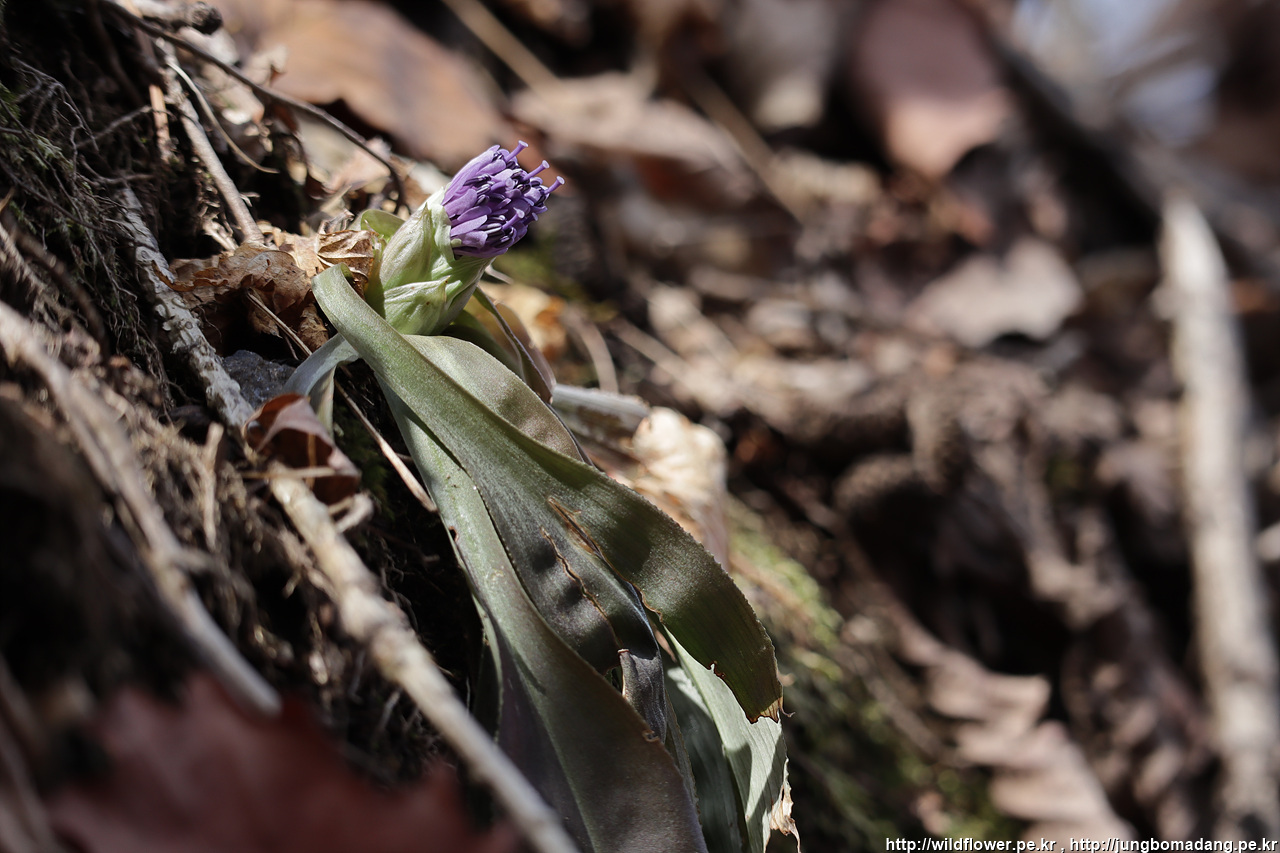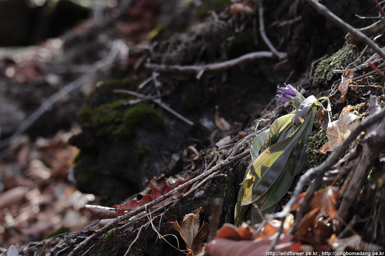 처녀치마 - 보려했던 꽃중에 하나인데, 아직 한군데는 여러 개체주엥 단 한녀석만 열심히 보라뱇 꽃을 몸 밖으로 밀어 내고 있습니다.