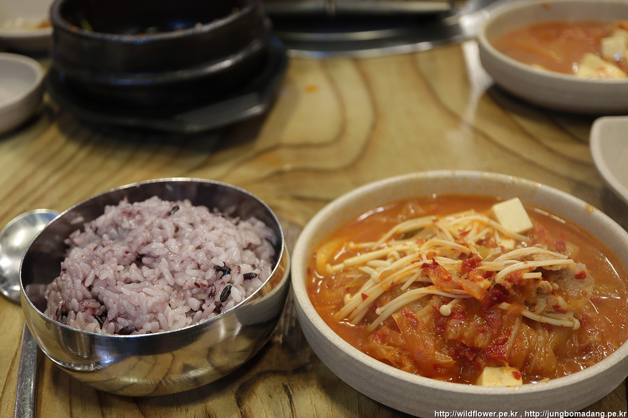 맛나게 고기를 먹고 김치찌게를 먹는 데 공기밥을 추가해서 흡입 시작합니다. 느끼한 고기를 잠재울 메뉴네요.