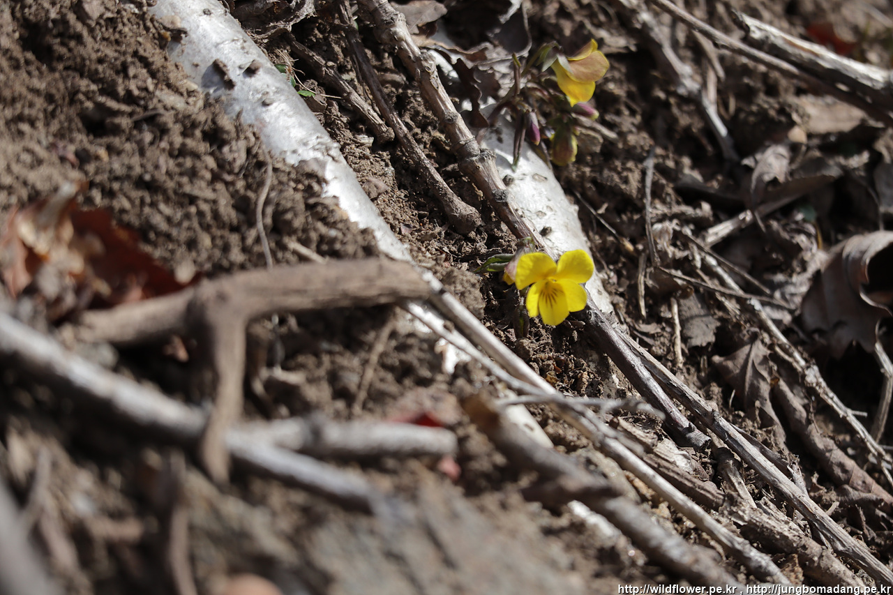 노랑제비꽃 - 척박한 환경인 듯 한데 희안하게 노랑색을 띈 제비꽃이 꽤 있습니다.