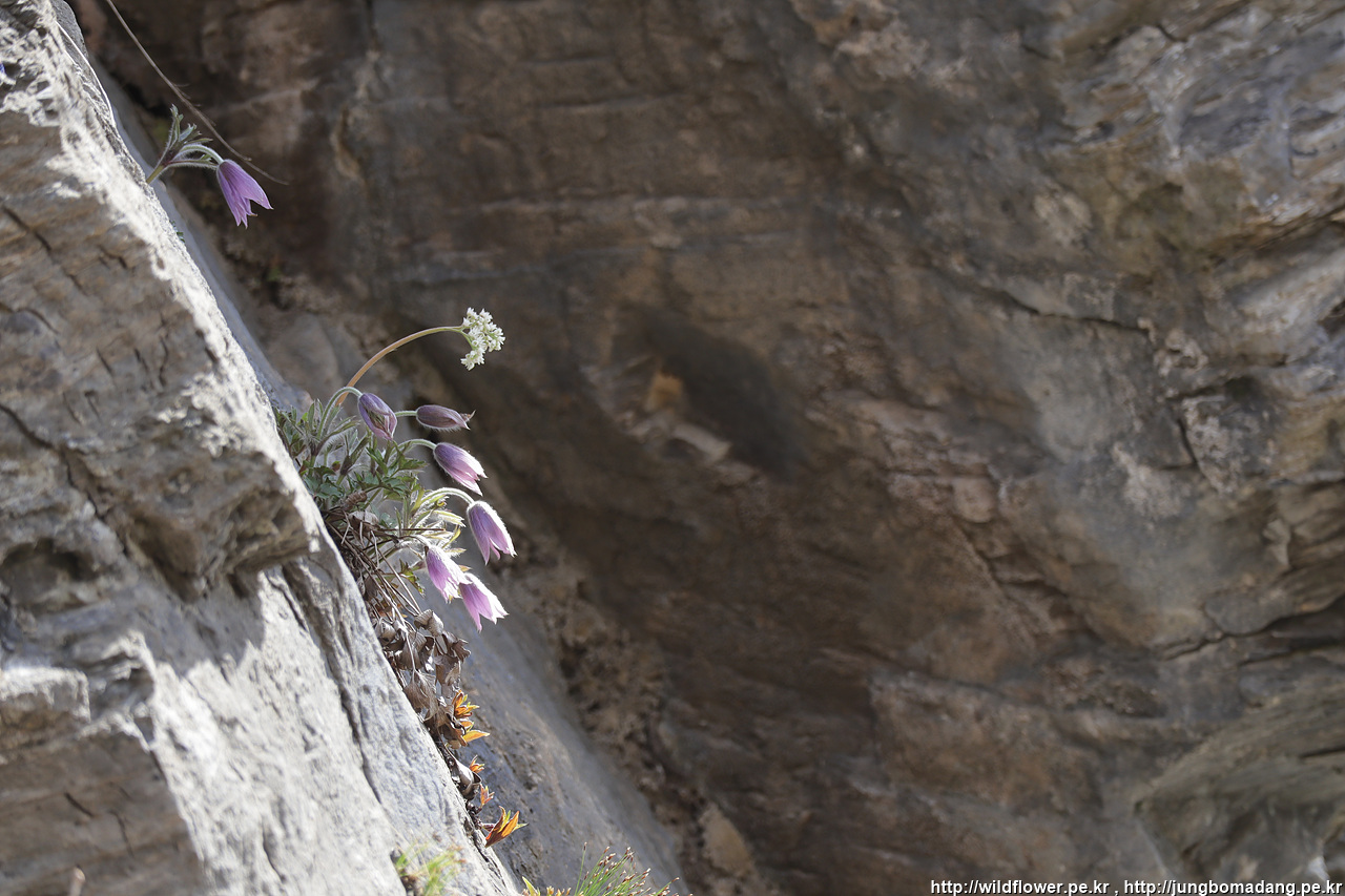 벼랑에 아슬히 자리잡은 동강할미꽃도 담아 봅니다.