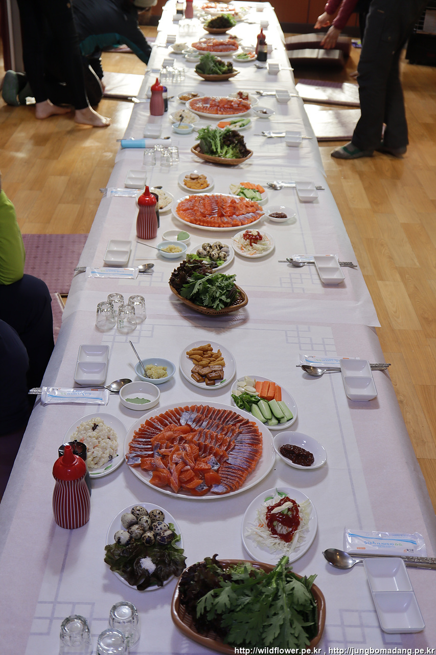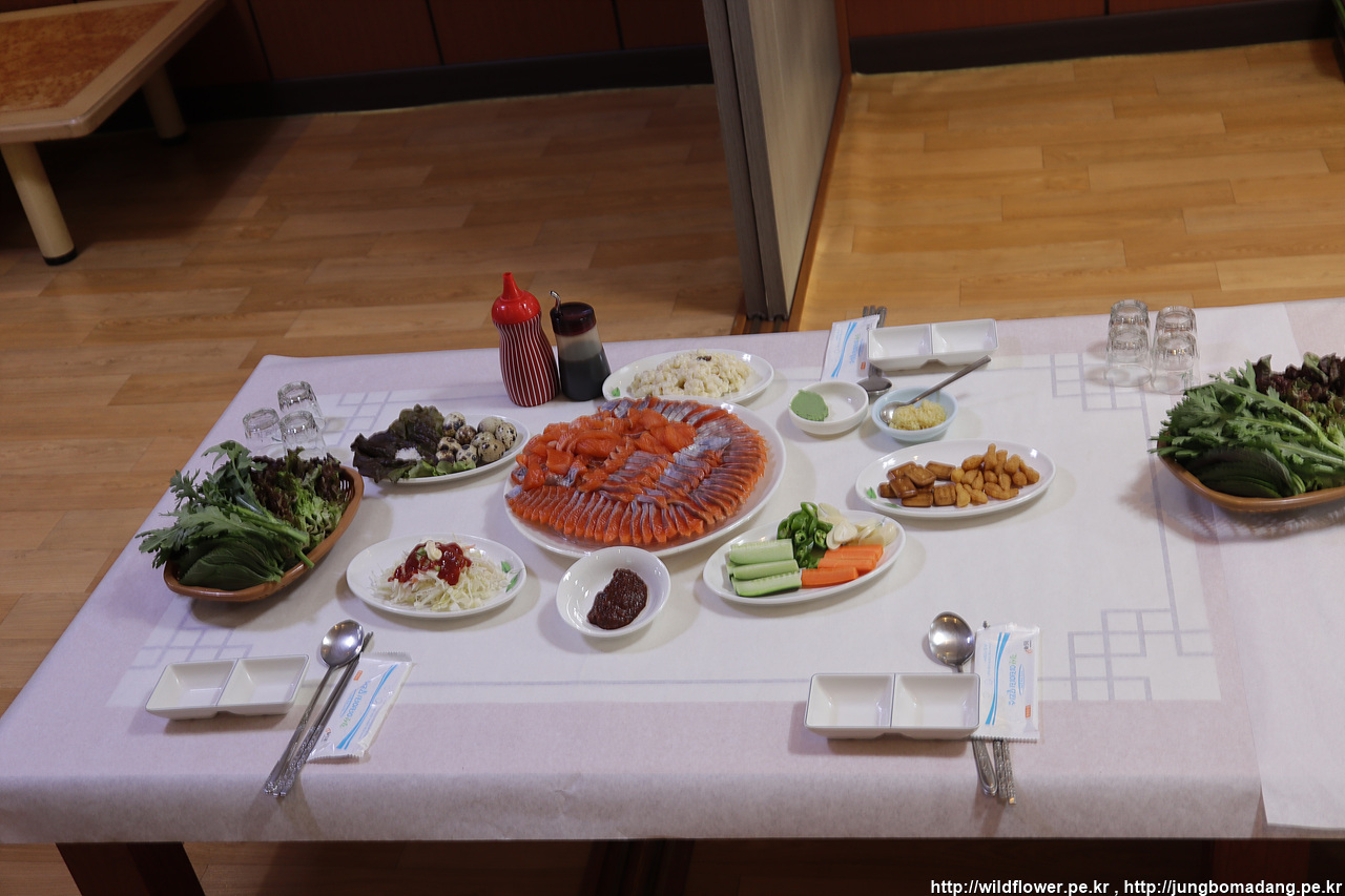 시간에 맞춰 세팅된 송어회가 한장 푸짐하게 펼쳐집니다.