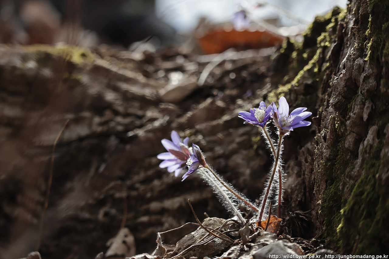 노루귀 - 청색. 유독 빛을 받으면 털이 돋보입니다.