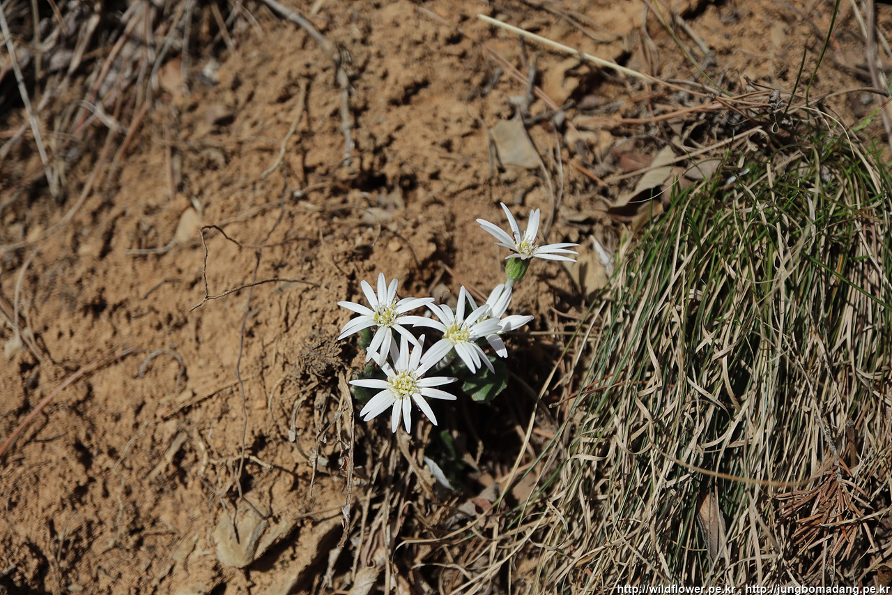 솜나물 - 개화가 완전히 되면 이런 모습입니다. 어찌 보면 꿩의바람꽃과 비슷하지만, 잎 모양도 다르고 꽃술도 꿩의바람꽃은 꽃술이 전체적으로 흰색인데 솜나물은 노란빛을 띄고 있는 게 다릅니다.