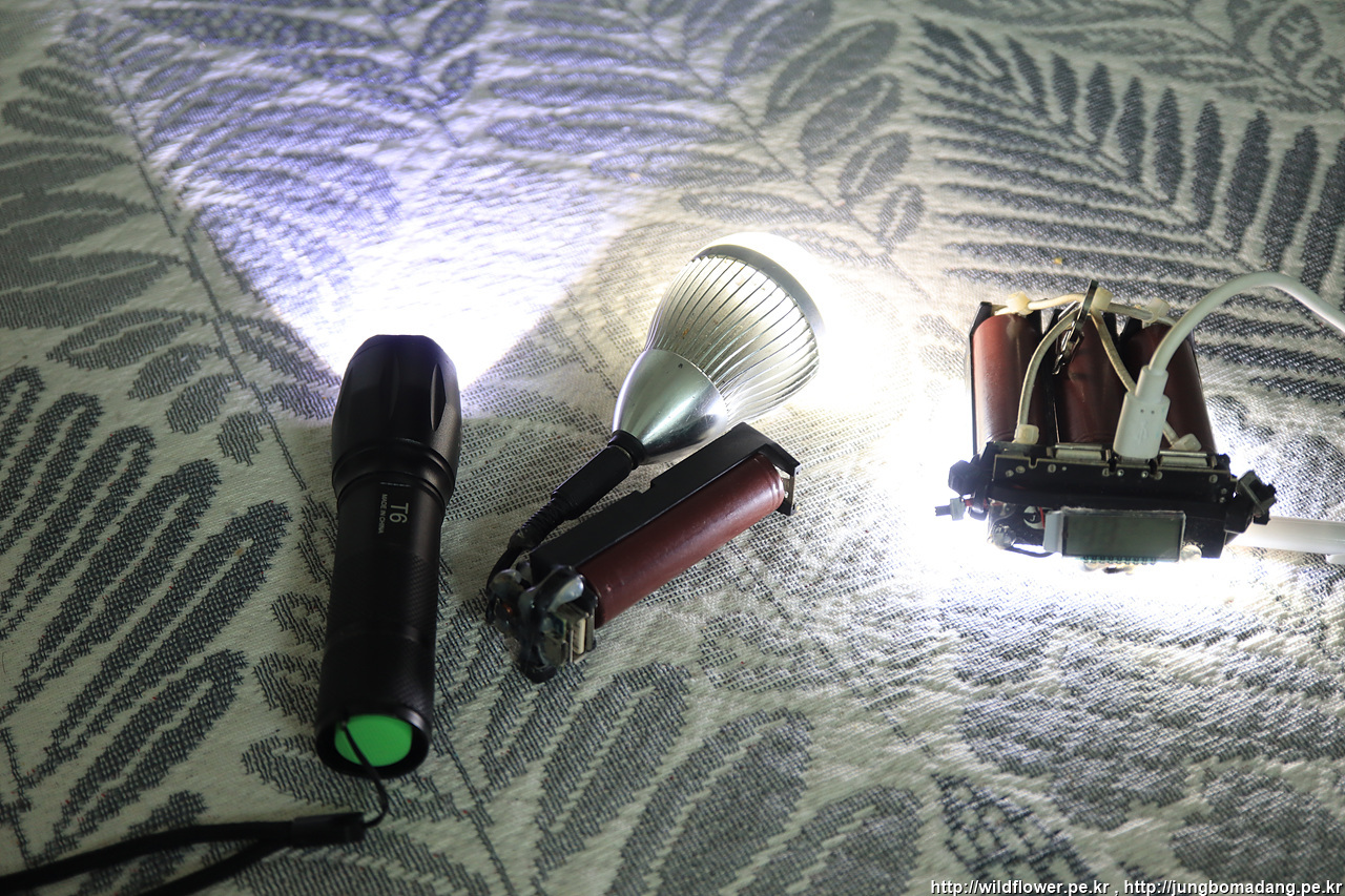 밤길 걸을 때 도움되는 랜턴, 내 텐트를 밝혀준 자작 랜턴, 식당(쉘터)을 밝혀준 자작 랜턴(크레모아 미니보다 밝음)