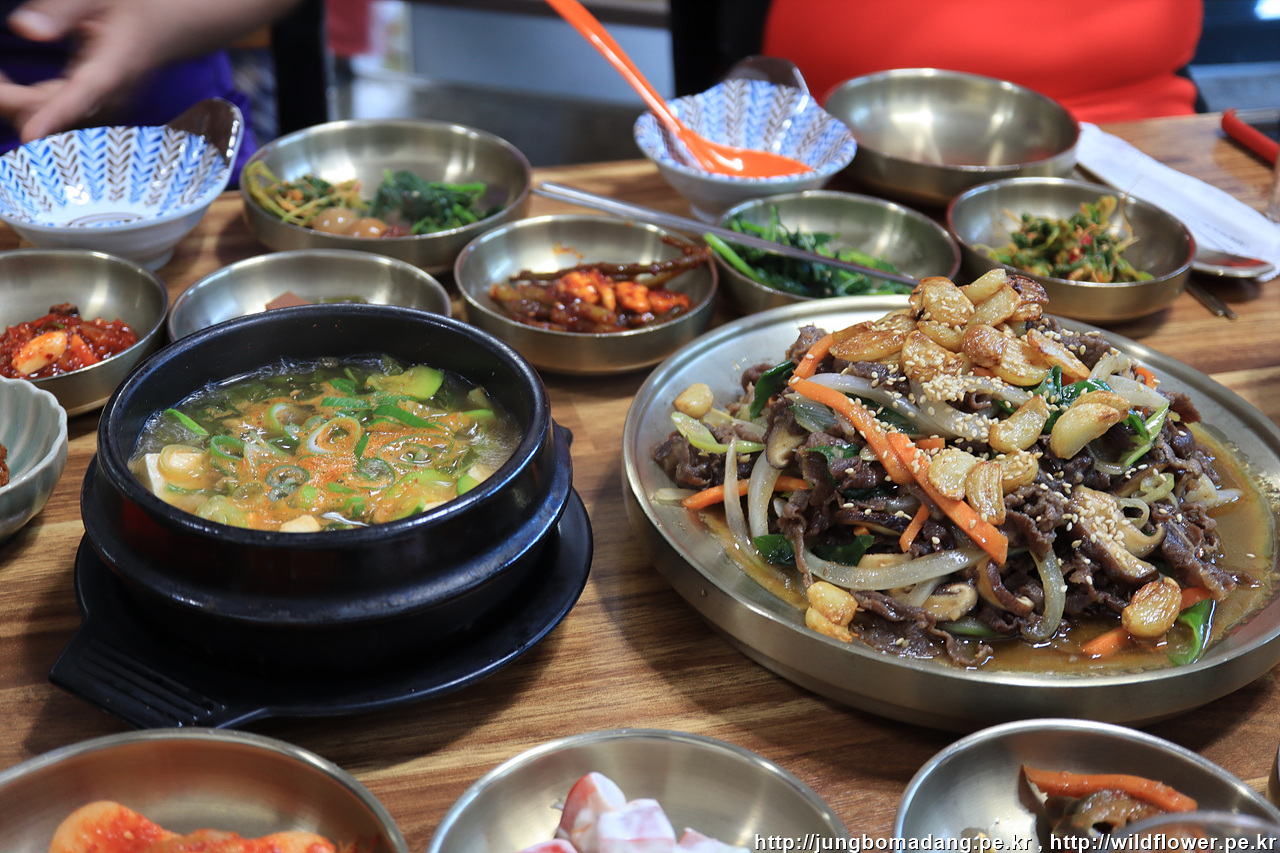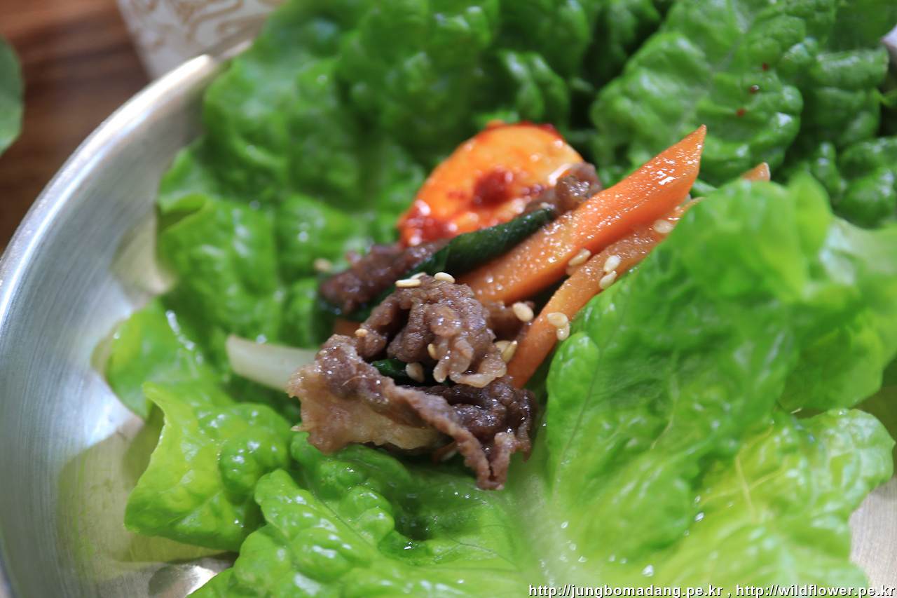 근처 단양군 대강면 소재지에 홍연이라는 한식집에서 뒷풀이를 합니다. 한우불고기쌈밥 기본 차림입니다.
