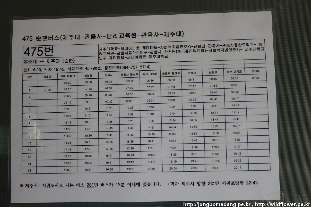 잠시 쉬면서 관음사 하산 후 버스 노선을 담아 봅니다. 14시 15시 정도 가능할 거 같네요.