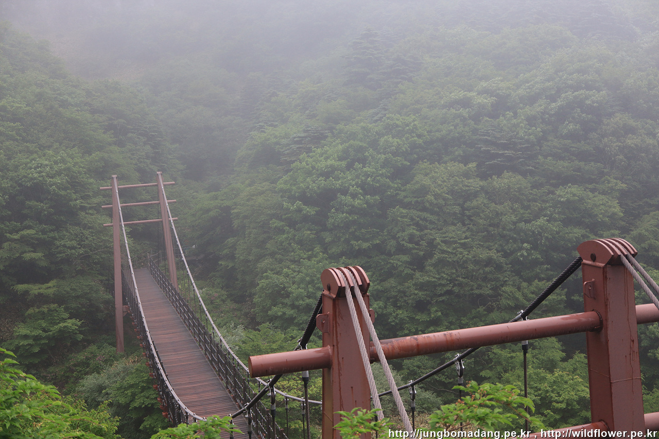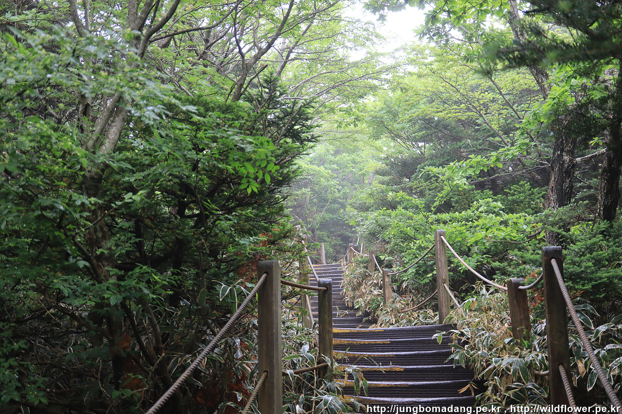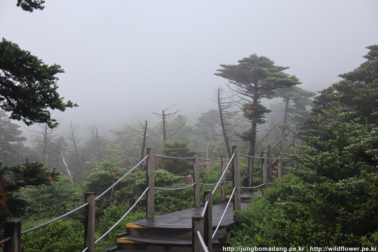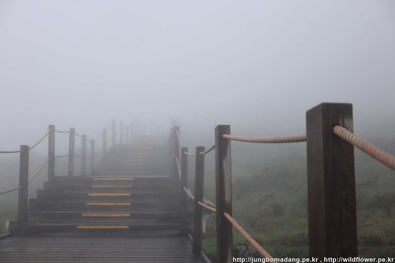 정상 부근으로 진행할수록 바람도 거세지고 비도 섞여서 우산이 휘청 휘청합니다.