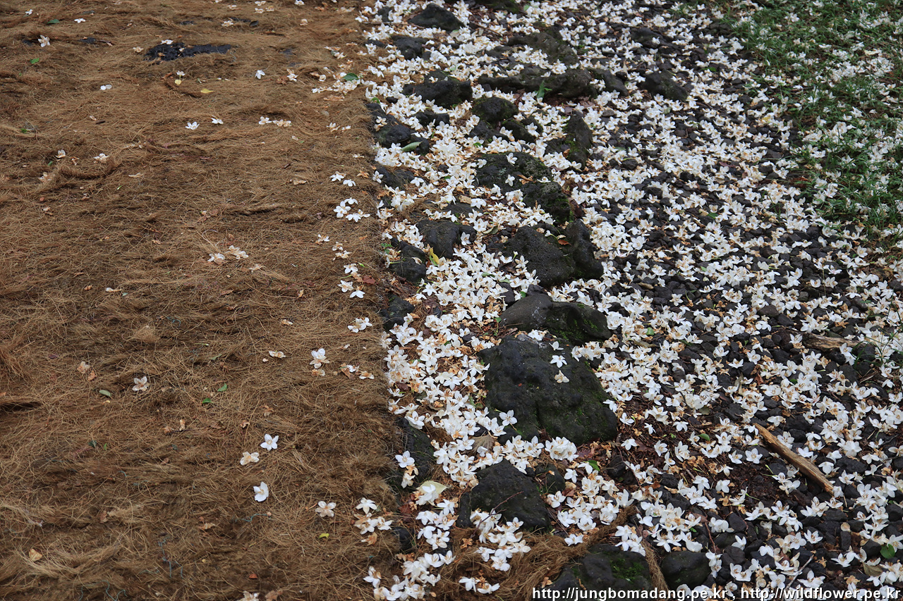 때죽나무들이 향긋한 꽃들을 바닥에 뿌려 두어 냄새가 참 좋습니다.