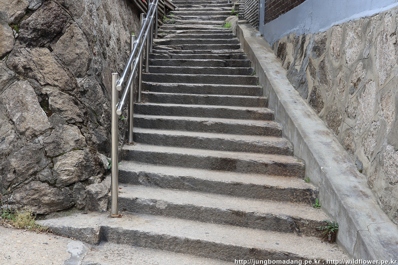 북촌 8경 ; 삼청동 돌계단길. 커다란 암반 하나를 통째로 조각한 독특한 조경.