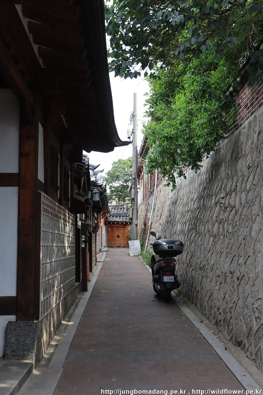 북촌 7경 ; 북촌로11길 일대. 고즈넉 분위기와 작은 여유를 느낄수 있는 소박한 골목인 데 웬 차량 한대가 주차되어 옥의 티 ㅠ