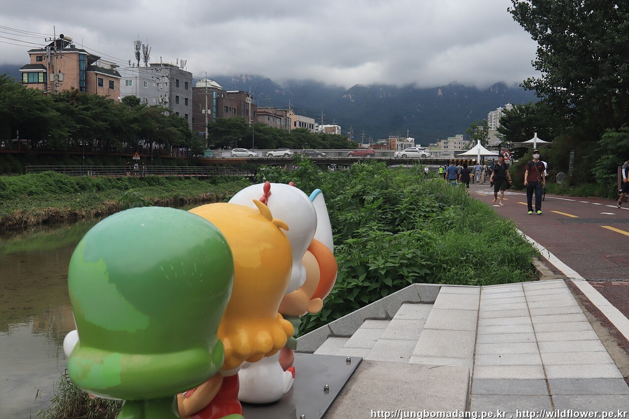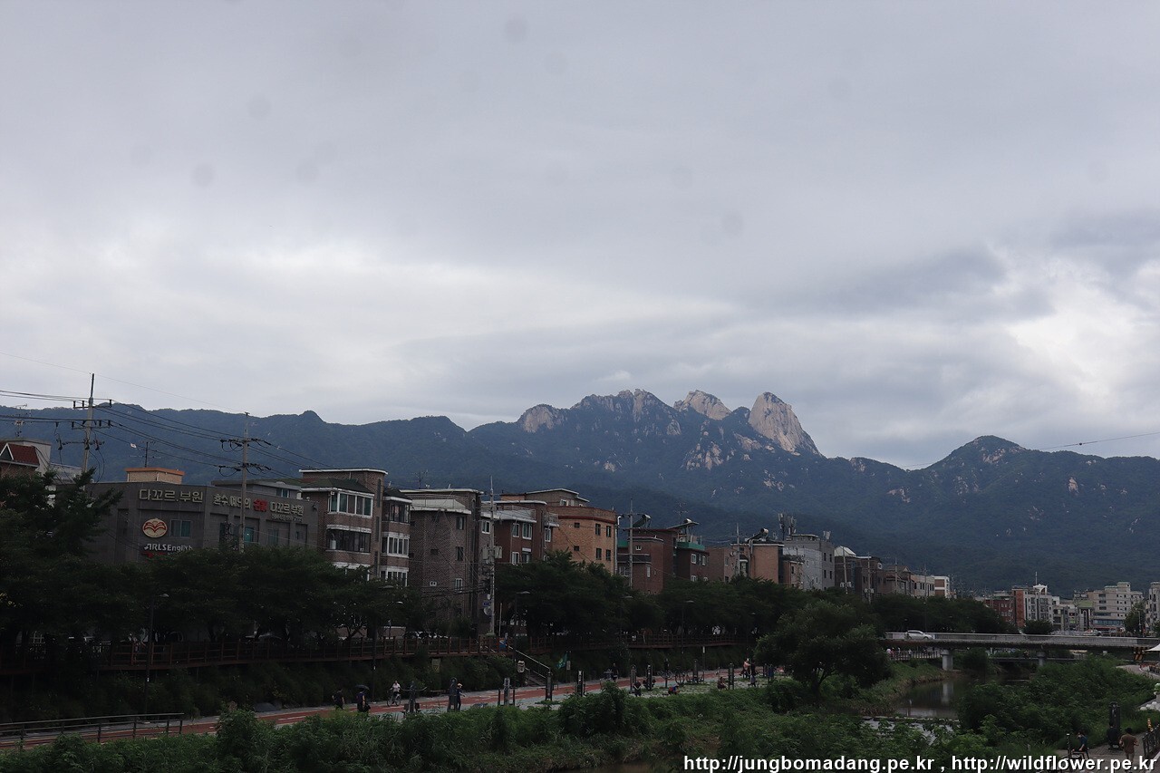 우이교에서 바라본 모습. 앞에 북한산 봉우리가 눈에 띄네요.