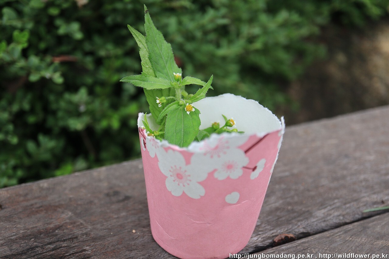 누군가 별꽃아재비를 꺾어서 종이컵에 담아 두고 가삣네요