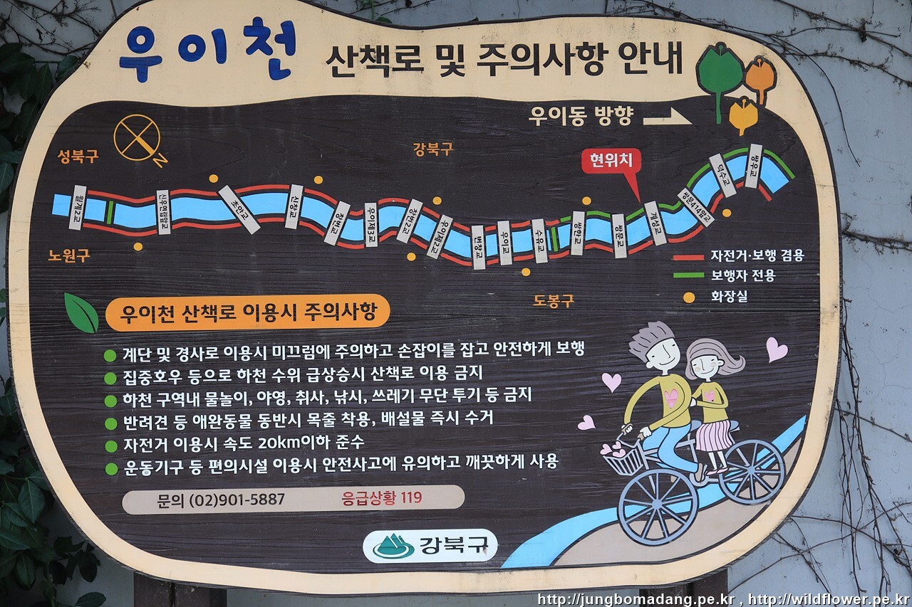 집에서 조굼 서둘러서 버스로 우이교에 하차하여 약속장소까지 우이천 따라 3km 정도 걸어볼까 합니다.