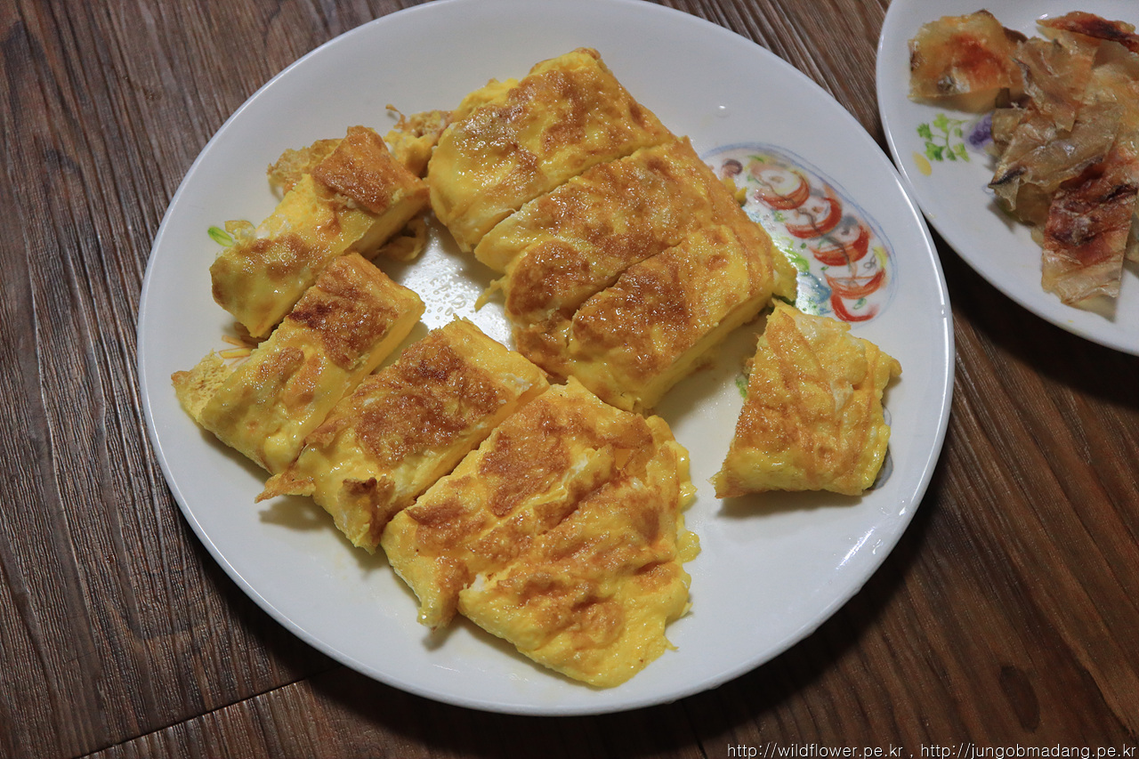 제가 늦게 와서 저녁을 못 먹어서 스마일님이 만들어 주신 계란말이. 우측에 제가 집에서 공수해온 쥐포가 살짝 보이네요.