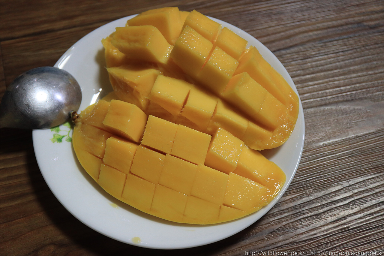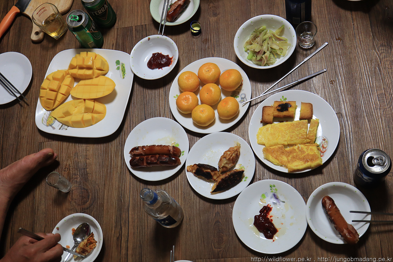 다들 펜션의 남산우방에 모여서 간단히 주류 시간을 가져 봅니다. 망고 땡!