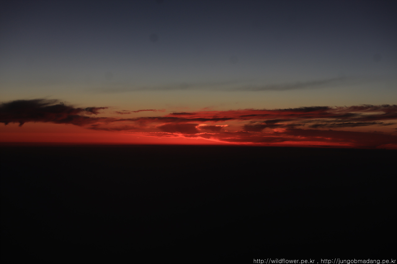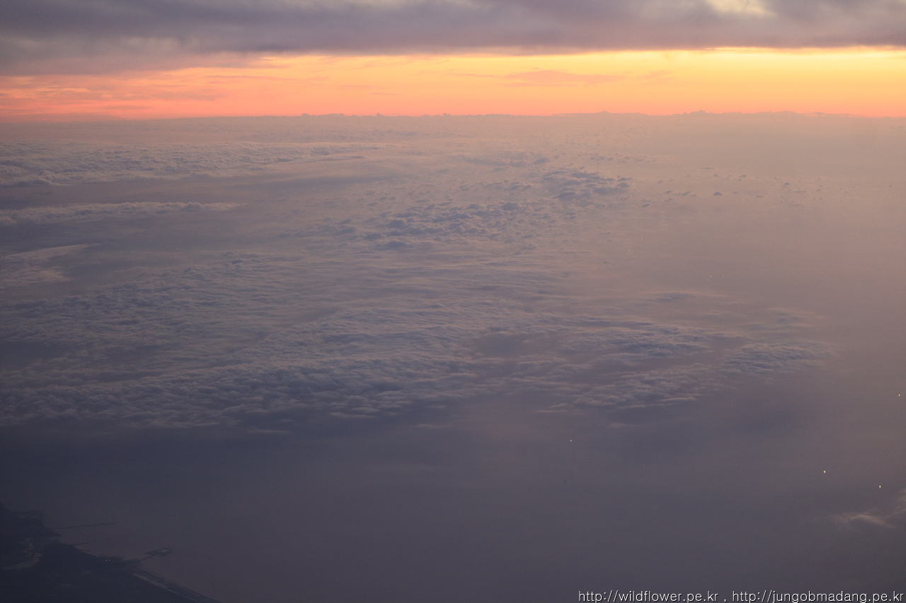 18시 25분 김포 출발 비행기. F 좌석에 앉아 이륙은 40분 넘어서 했으나 다행히 의도한 대로 약간의 일몰을 볼 수 있었습니다.