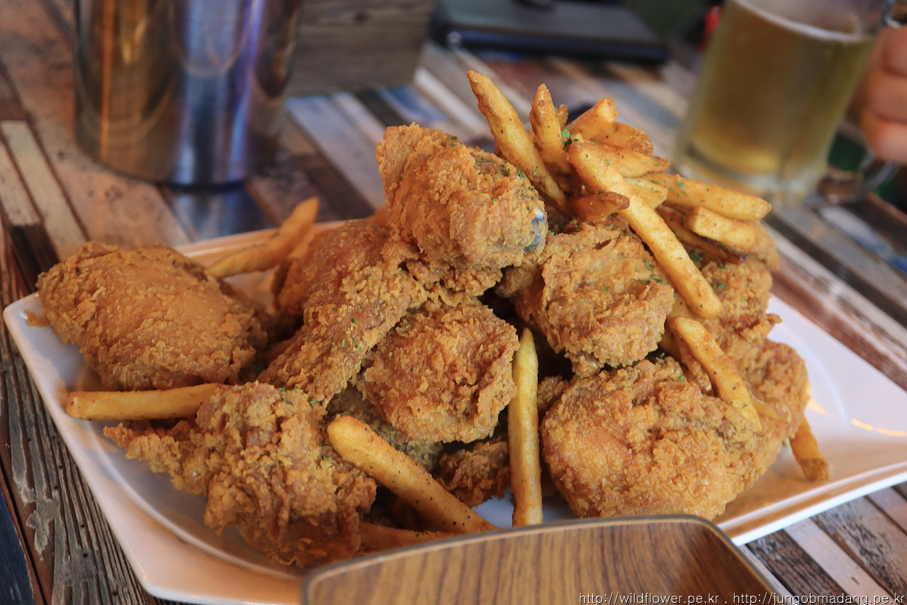 바삭한 후라이드 치킨에 쏘생맥주를 함께 합니다.
