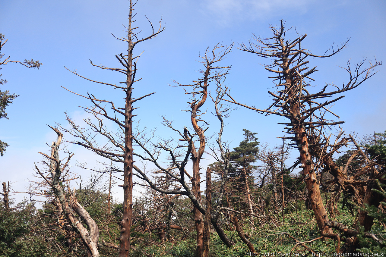 고사된 전나무 - 지구온난화때문에 겨울에 적설량이 많지 않아 말라 죽은 ㅠ