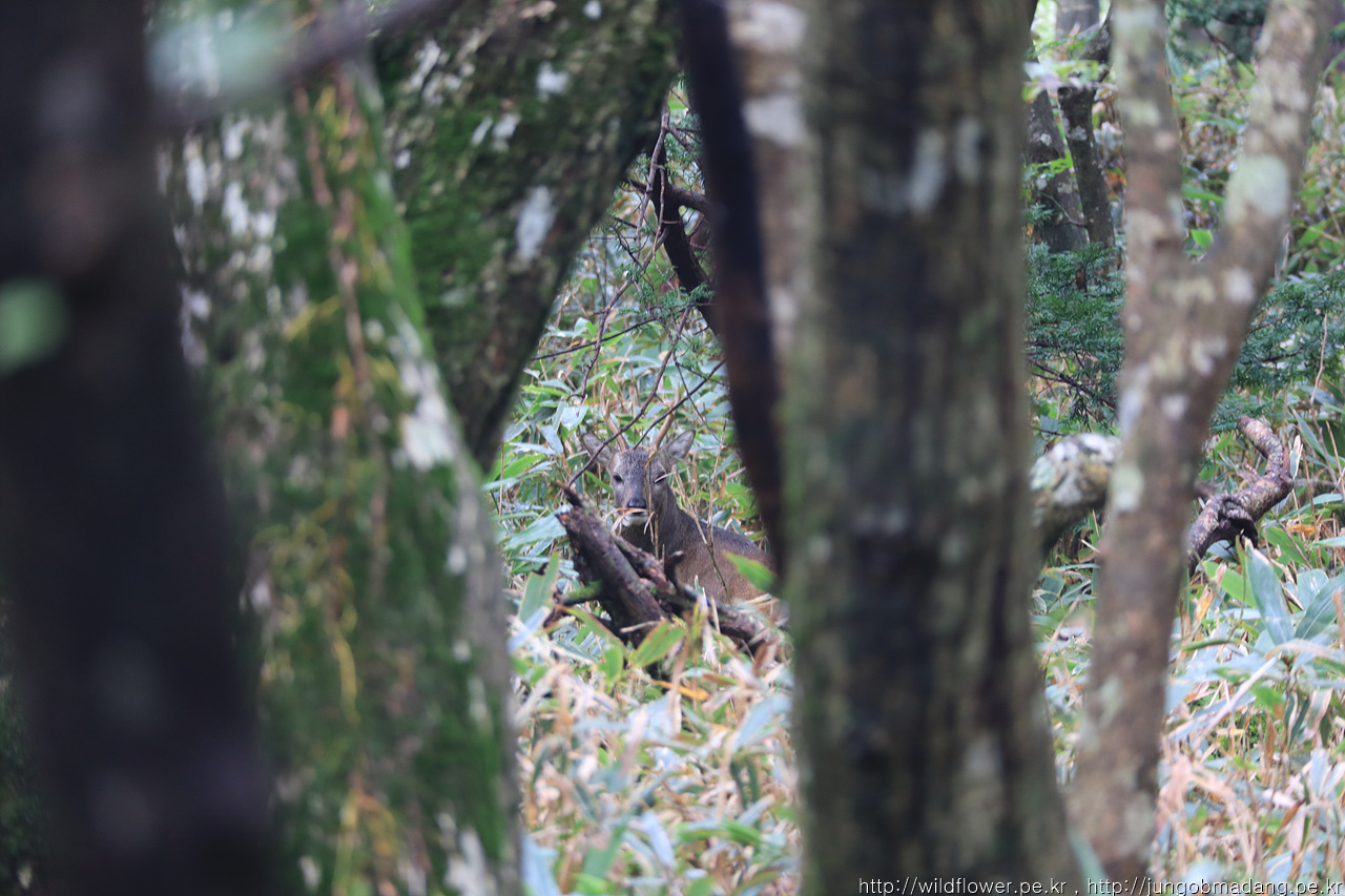 하산을 이어 가는 데 한라산노루가 한마리 제주조릿대를 폴짝 폴짝 하다가 인기척 때문에 잠시 스톱합니다.