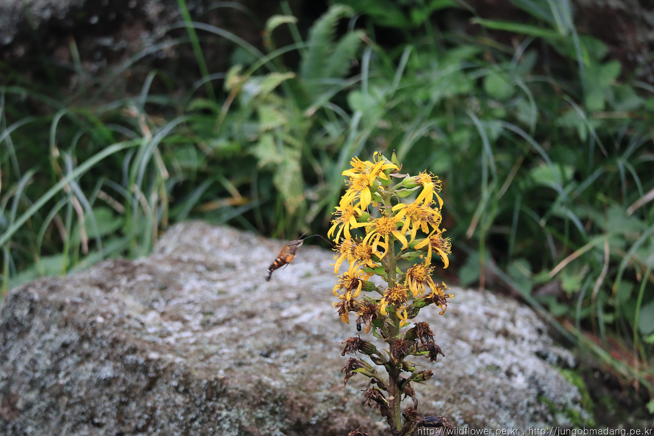 곰취에 박각시나방 한마리가 열심히 드리대는 중입니다.