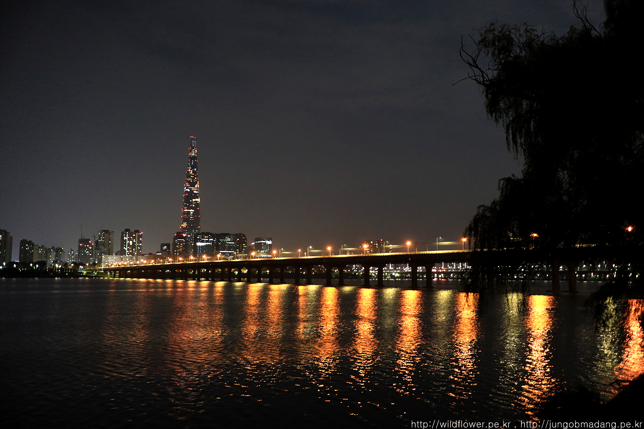 불꺼진 올림픽대교와 제2롯데타워. 오늘은 자정이 지나 11분에 한강다리 불이 소등되더군요.