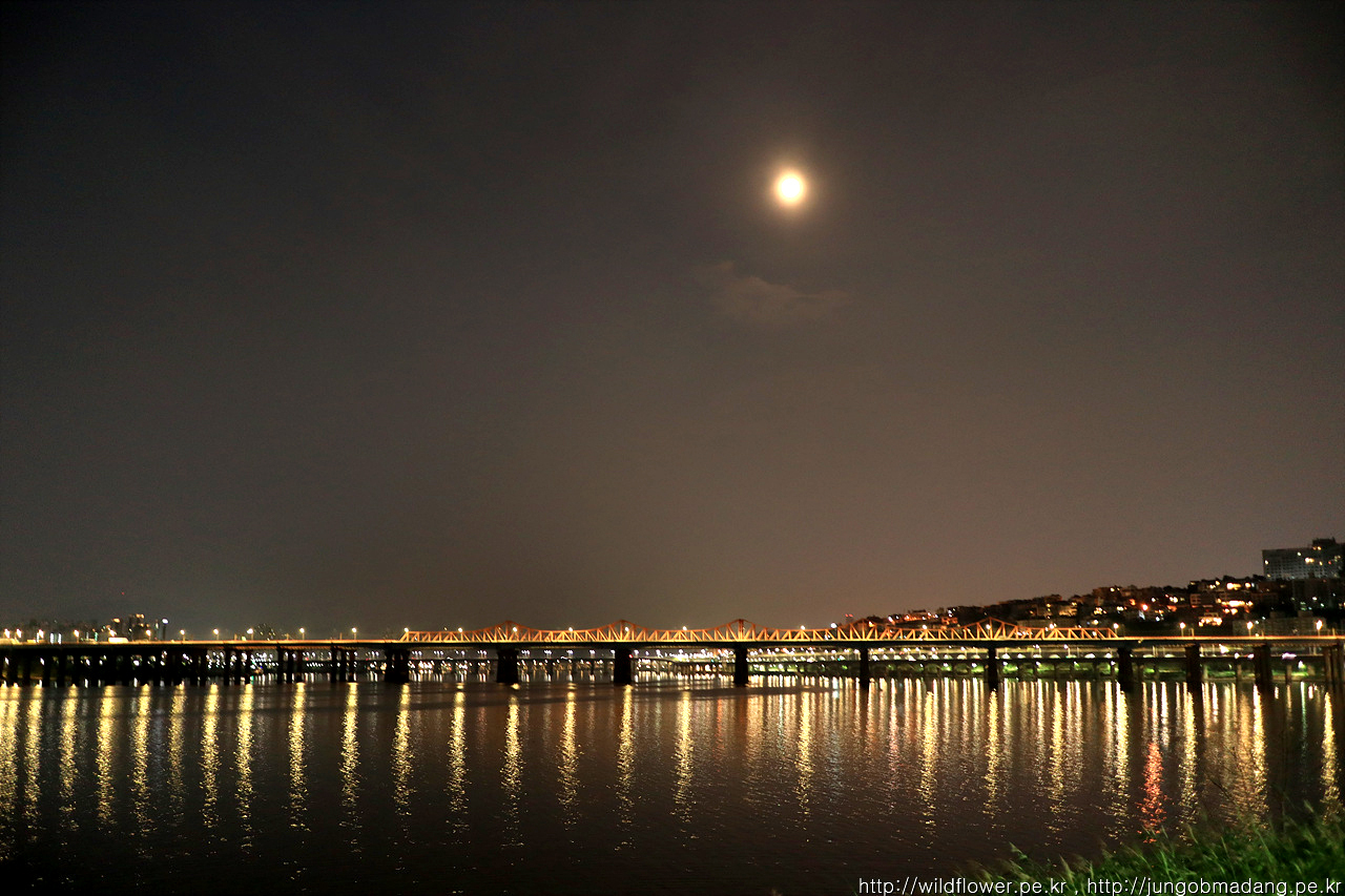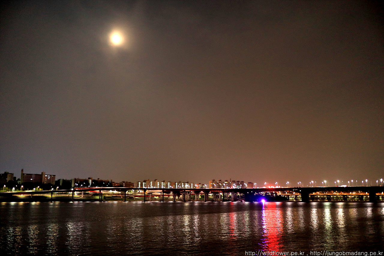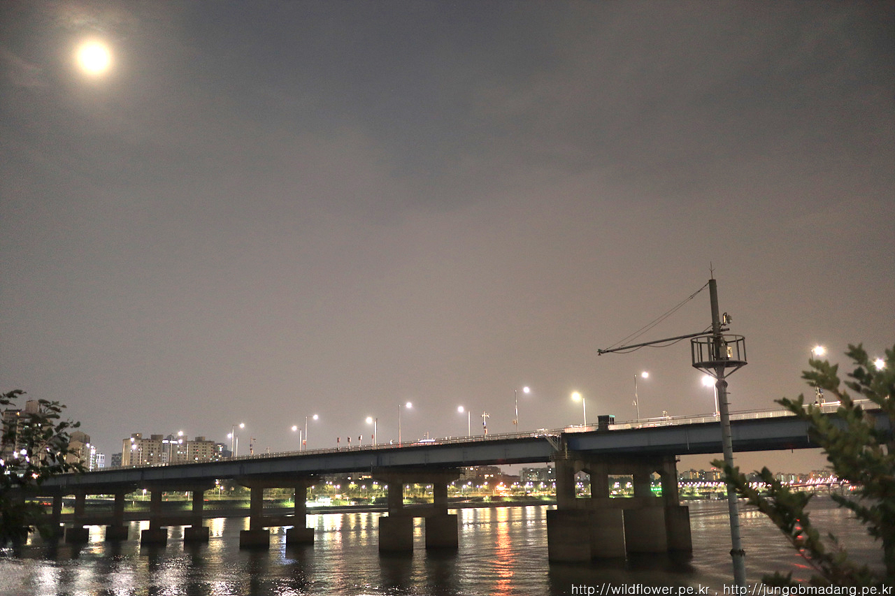달님이 참 밝아요. 그 아래 동호대교가 보입니다.