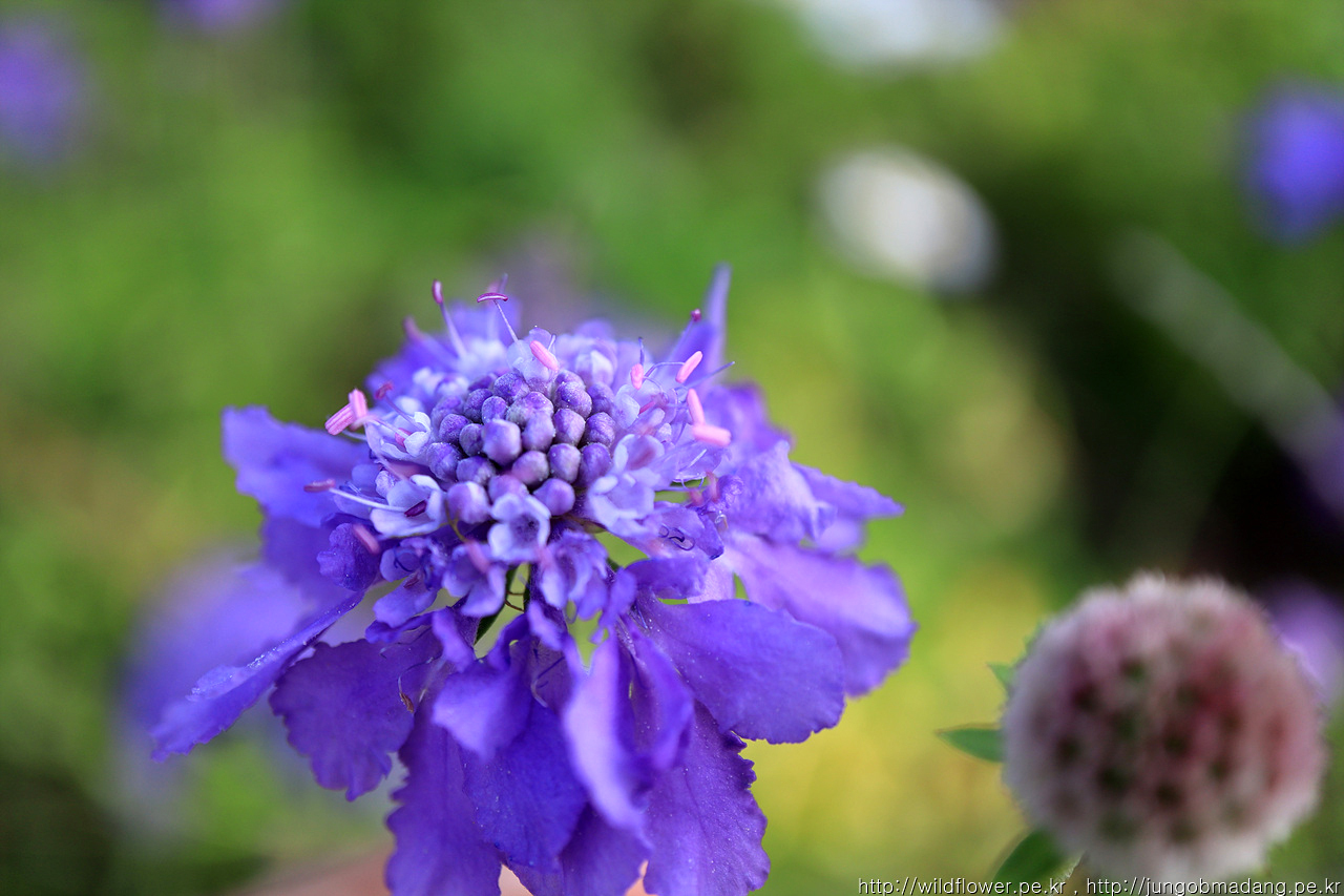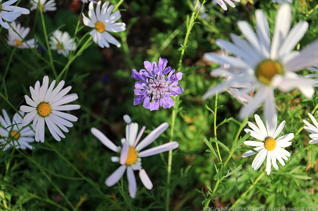 솔체꽃 한송이가 포천구절초 사이에 피어 있습니다.