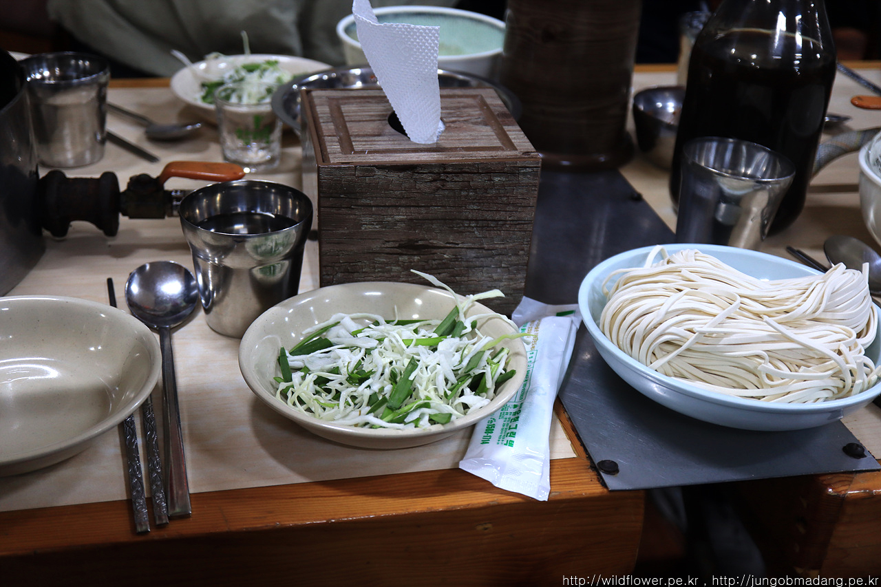 기본 양념과 대기중인 칼국수 면발. 옆에 어느분이 이 칼국수 면발 신발끈 같다 그래서 신고 가시라 그러니 둘이만 키득 키득