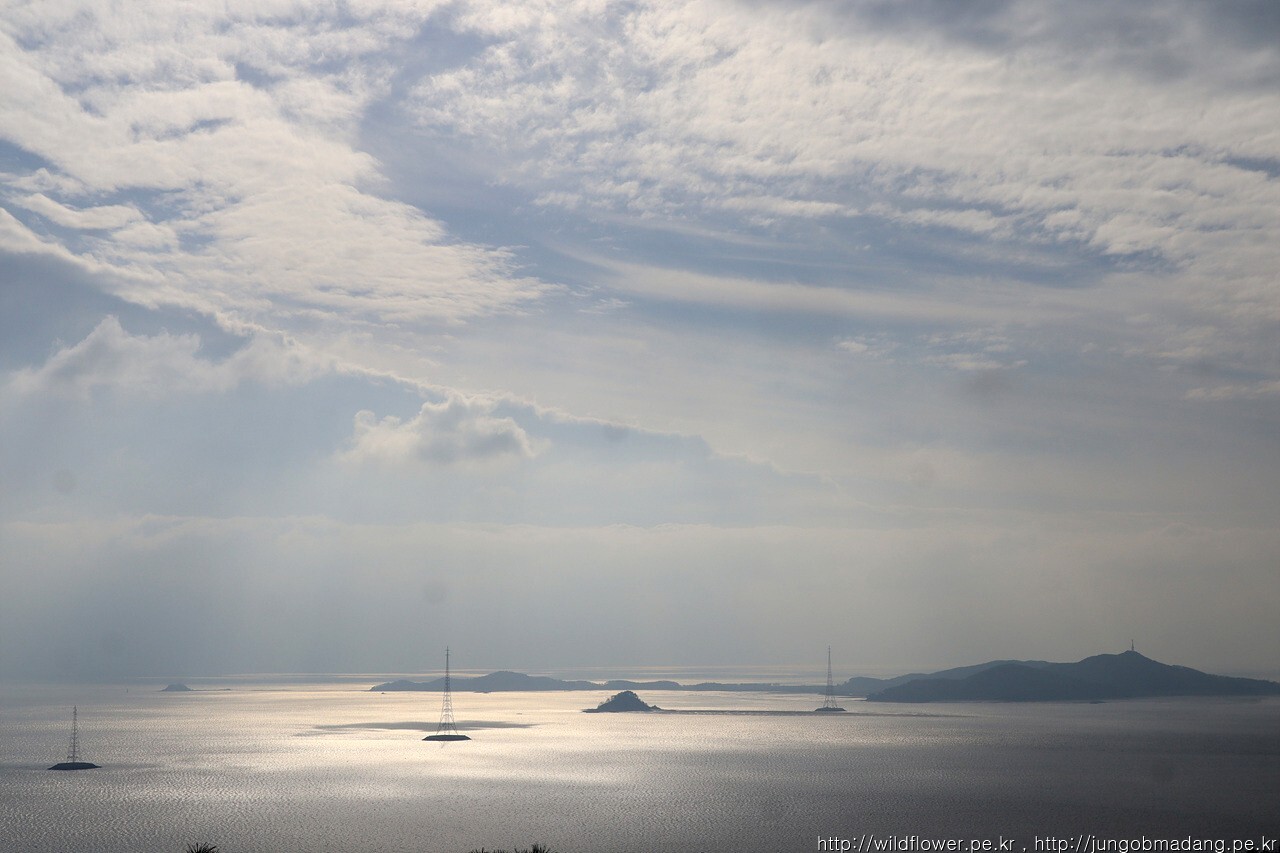 소송도, 대성도 사이로 이어지는 송전탑이 인상적입니다