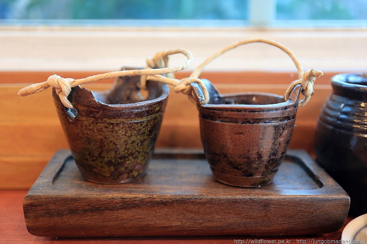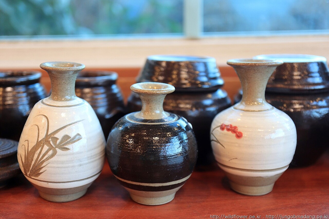 식당안에 장식중인 귀여운 사이즈의 옹기 작품들..