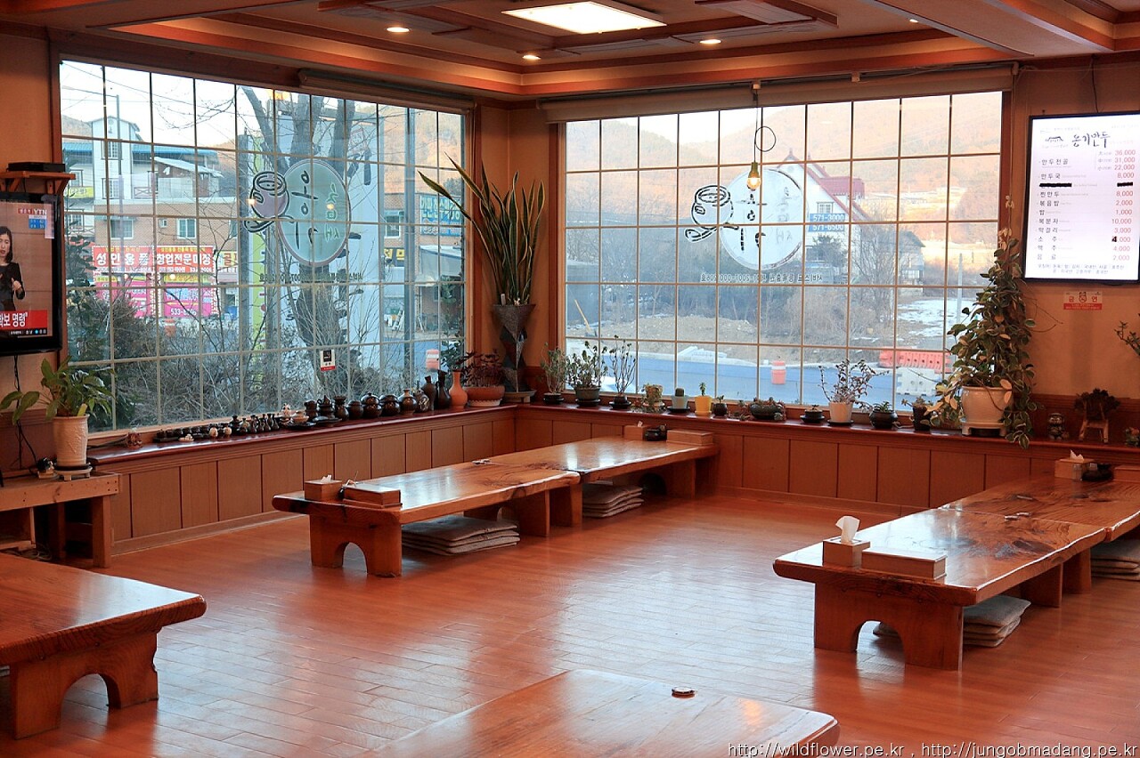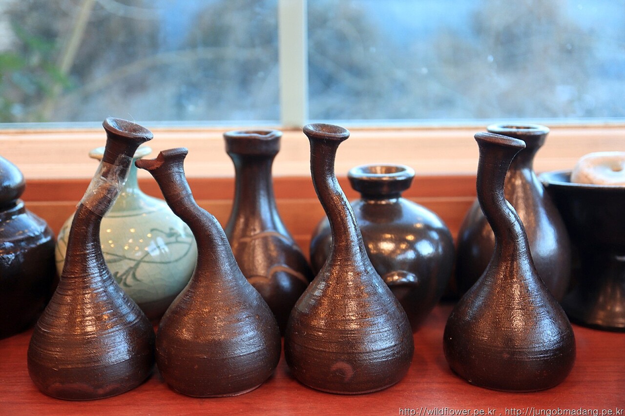 식당안에 장식중인 귀여운 사이즈의 옹기 작품들..