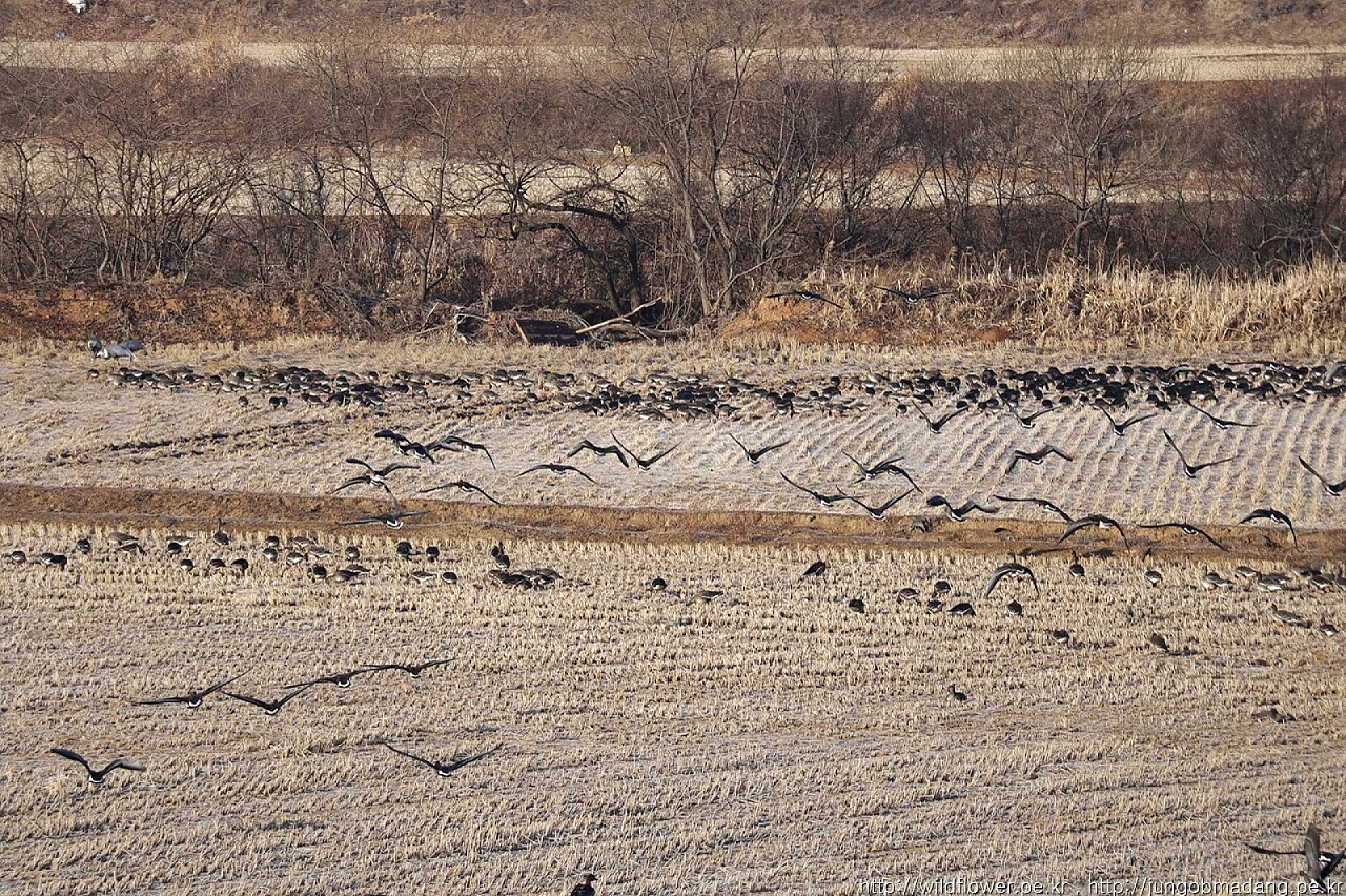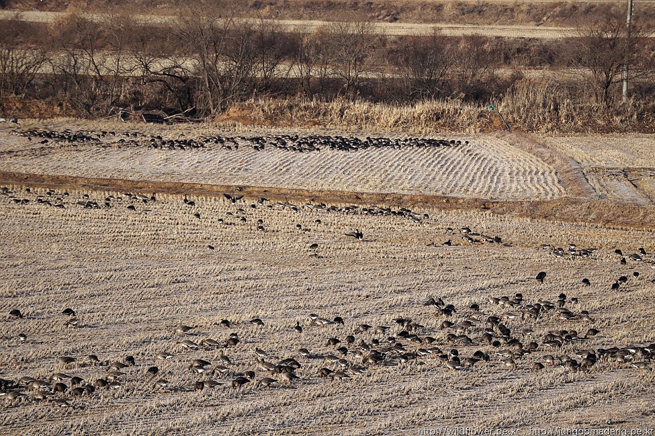 쇠기러기들이 조용히 낟알을 줍 줍 하고 있습니다.
