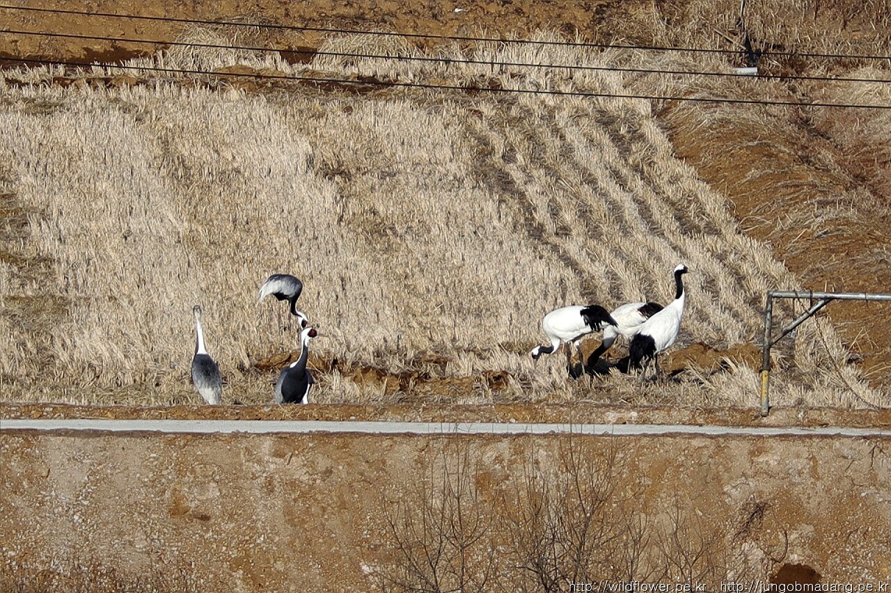 또 다른 포지션에도 좌측에 재두루미 두마리와 우측에 두루미 가족